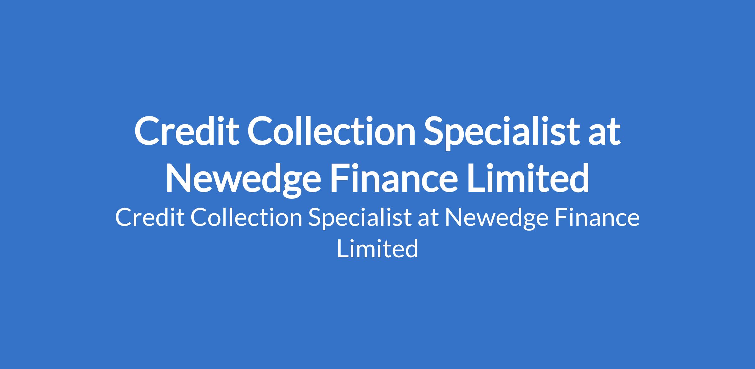 Newedge Finance Limited is recruiting to fill the position of: Credit Collection Specialist. The position is located in Ogba Aguda, Lagos State. Salary: N150,000 - N250,000 / month. Interested candidates should possess a Bachelor's Degree / HND / NCE / OND / SSCE qualification.