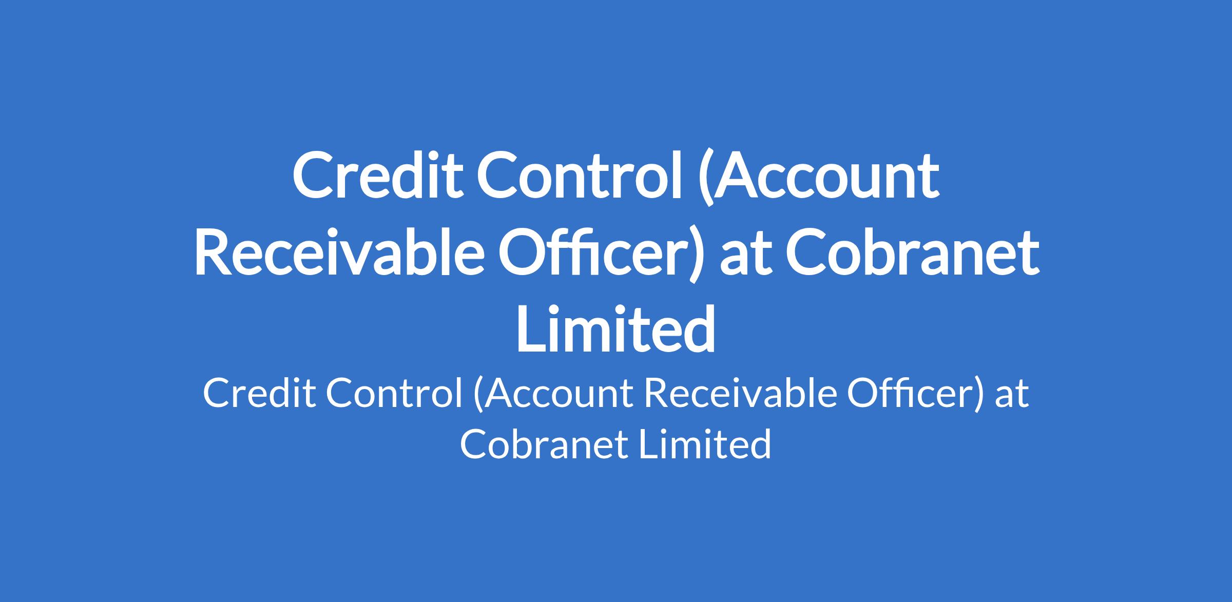 Cobranet Limited is recruiting to fill the position of: Credit Control (Account Receivable Officer). The position is located in Lekki Phase 1, Lagos State. Interested candidates should possess relevant qualifications with previous experience of end-to-end credit control and accounts receivable processes and at least 5 years experience in Credit and receivables and accounting domain.