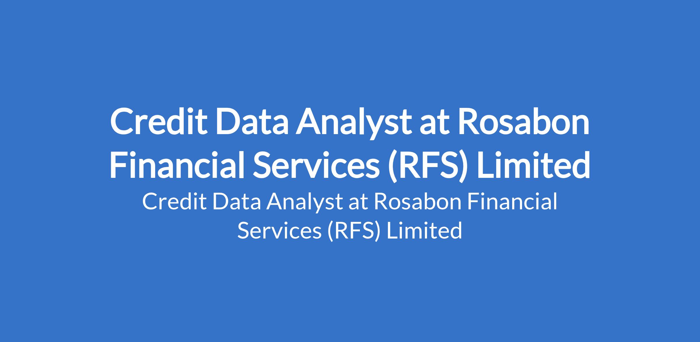 Rosabon Financial Services (RFS) Limited is recruiting to fill the position of: Credit Data Analyst. The position is located in Lagos State. Salary: N400,000 - N600,000 monthly. Interested candidates should possess a Bachelors Degree in Statistics, Mathematics, Economics, Finance, Data Science, or a related field with 35+ years in Credit Analytics, Risk Analytics, or Data Analysis within Financial Services.