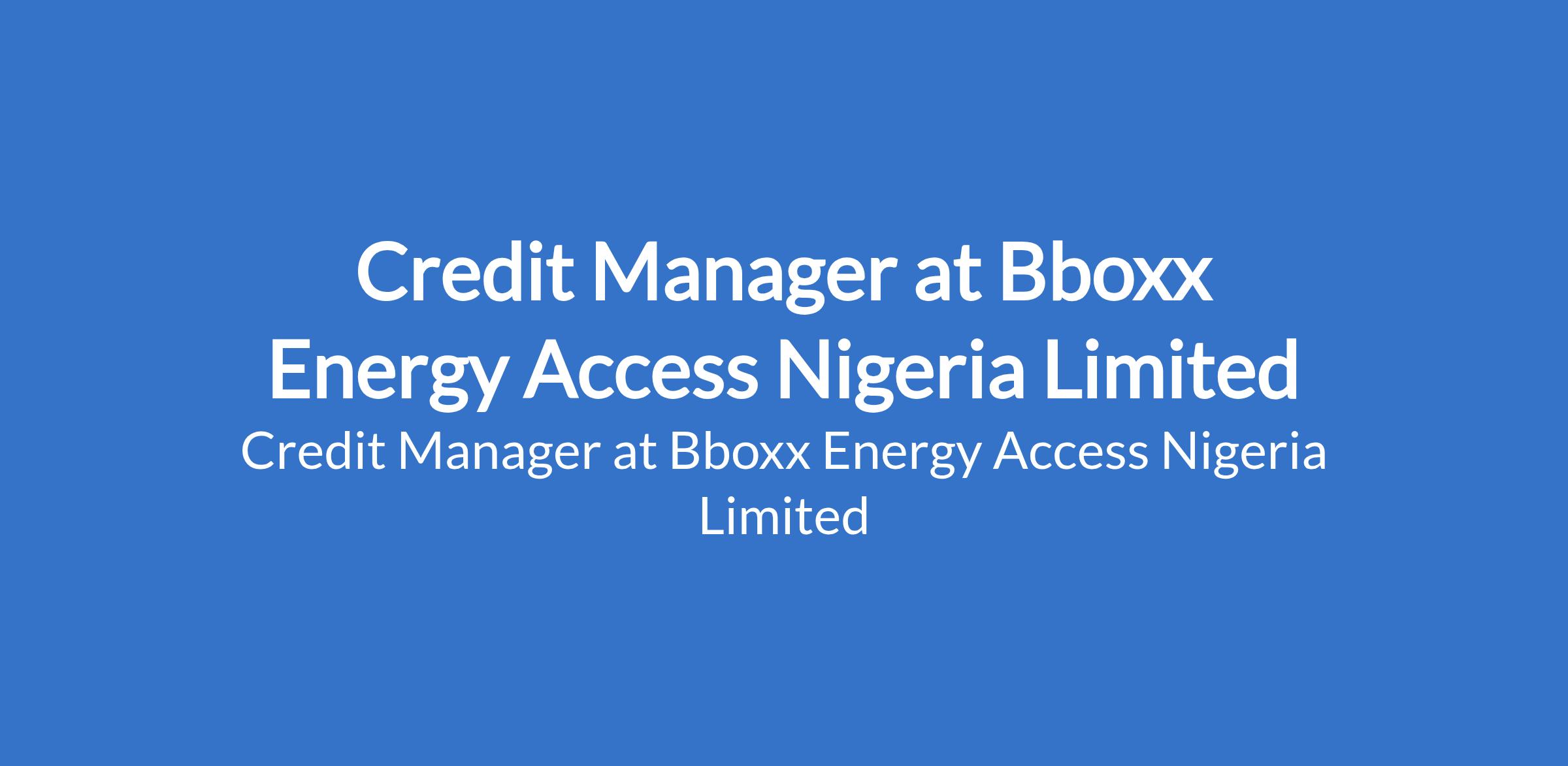 Bboxx Energy Access Nigeria Limited is recruiting to fill the position of: Credit Manager. The position is located in Alausa / Ikeja - Lagos State. Interested candidates should possess a Degree in Finance, Business Administration, Engineering, Applied Mathematics, or related fields with 7+ years experience in credit risk, portfolio management, fintech, or banking.