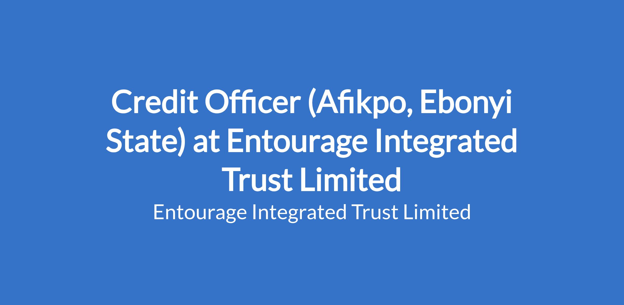 ENTOURAGE INTEGRATED TRUST LIMITED is looking for a CREDIT OFFICER to facilitate lending for our clients by assessing creditworthiness and processing relevant paperwork in AFIKPO, EBONYI STATE.