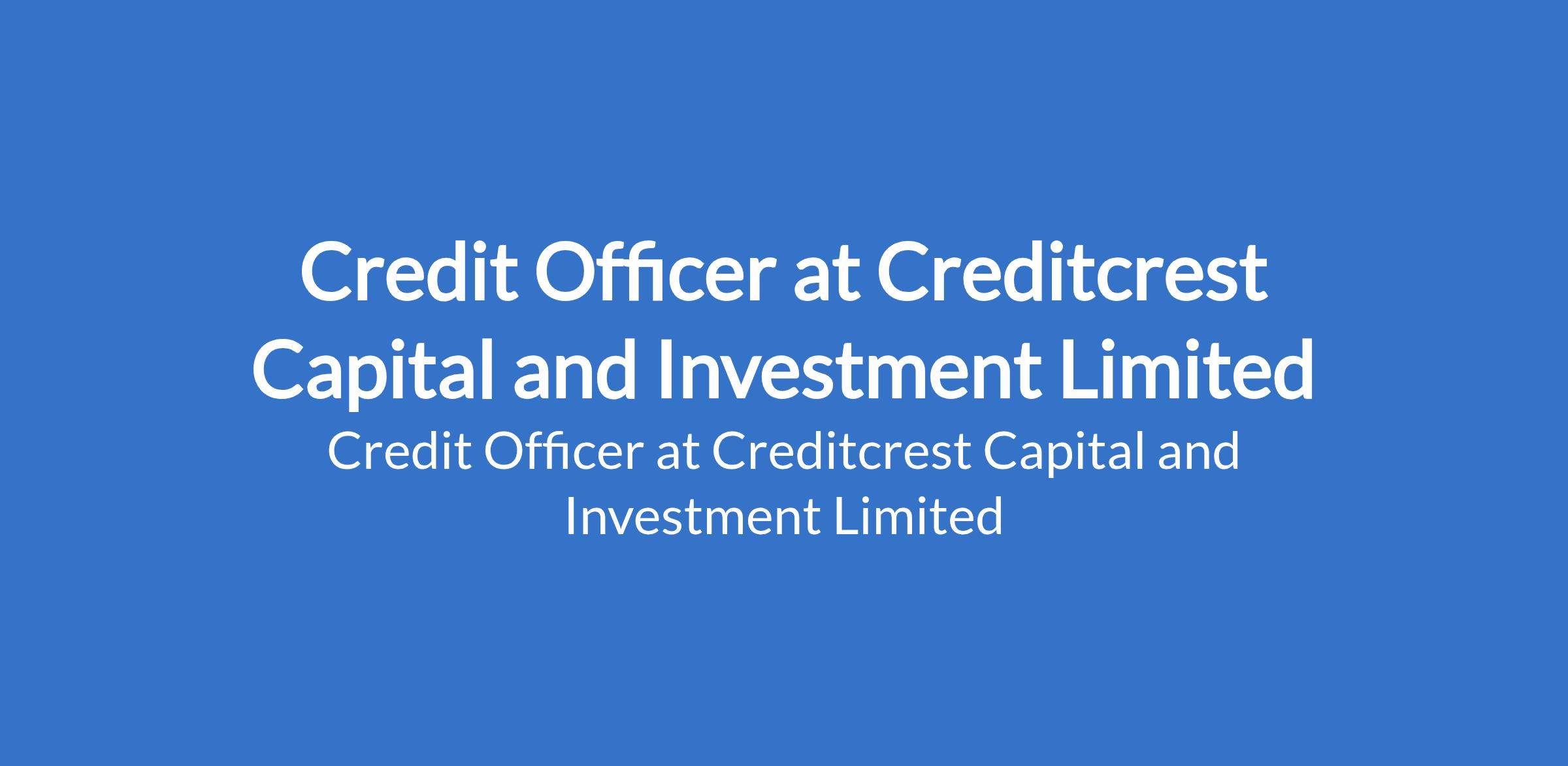 Creditcrest Capital and Investment Limited is recruiting to fill the position of: Credit Officer. The position is located in Abeokuta, Ogun State. Interested candidates should possess relevant qualifications with proven experience in the Microfinance sector.