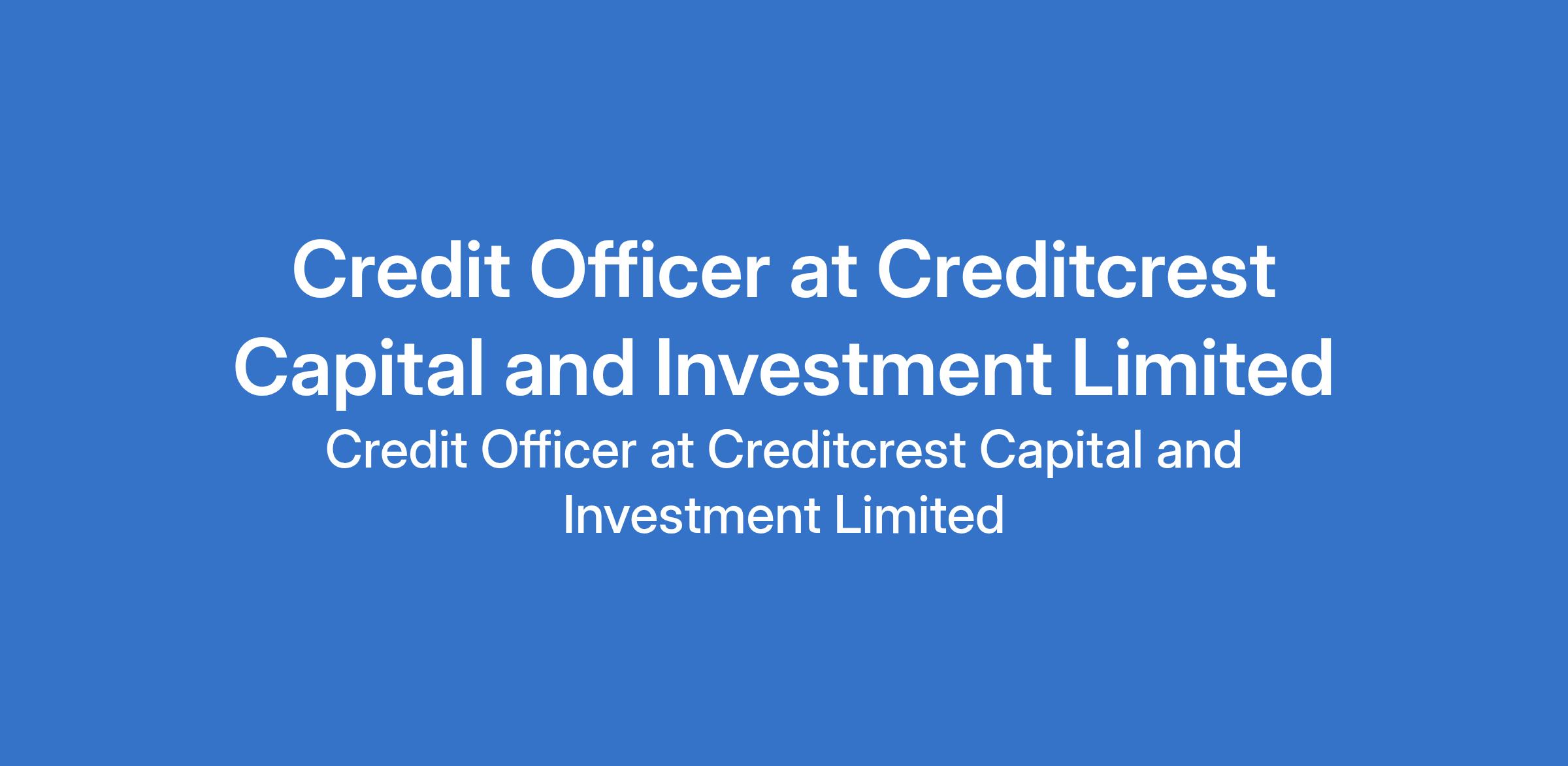 Creditcrest Capital and Investment Limited is recruiting to fill the position of: Credit Officer. The position is located in Abeokuta, Ogun State. Interested candidates should possess relevant qualifications with proven experience in the Microfinance sector.