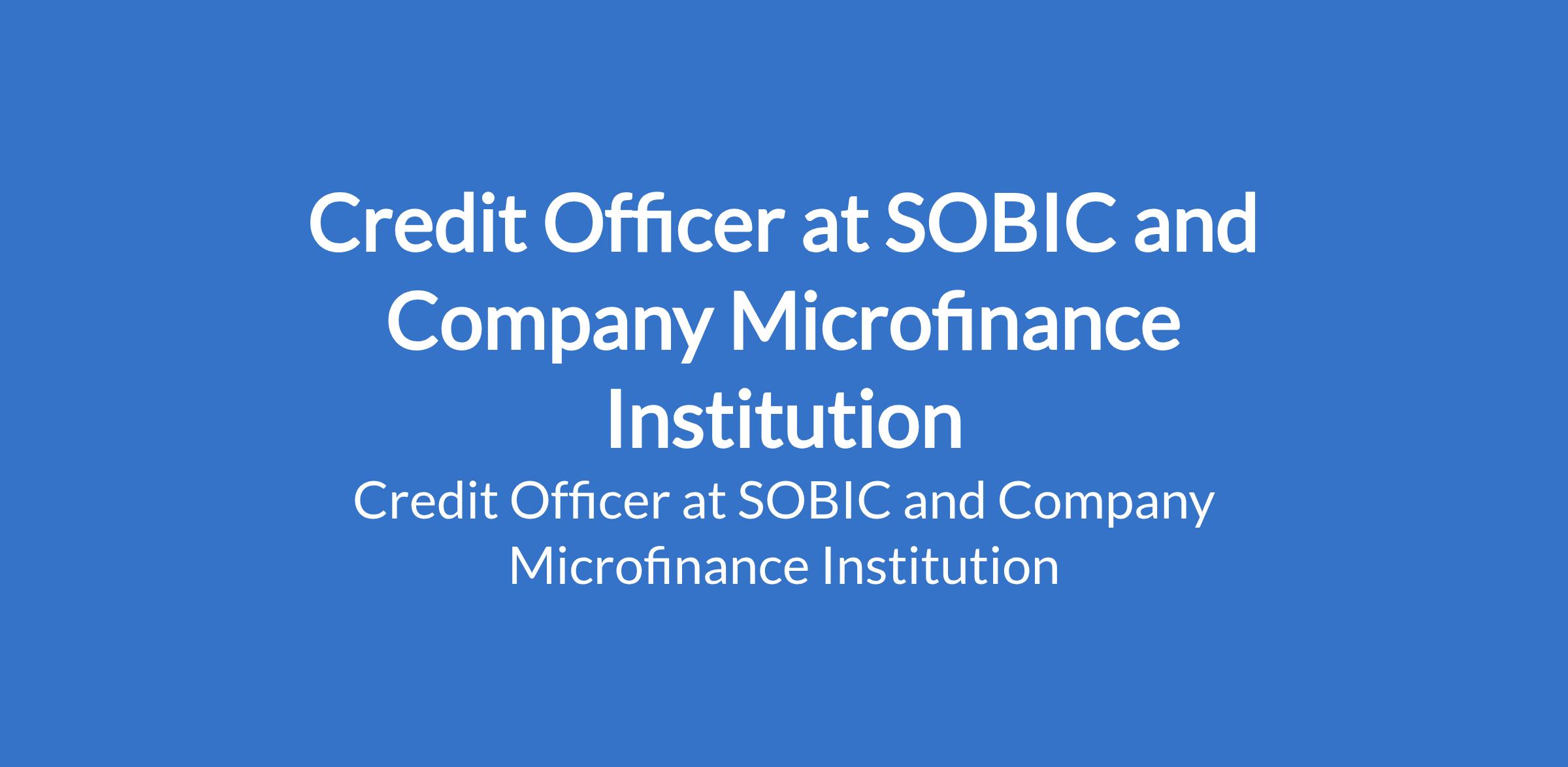 Credit Officer at SOBIC and Company Microfinance Institution