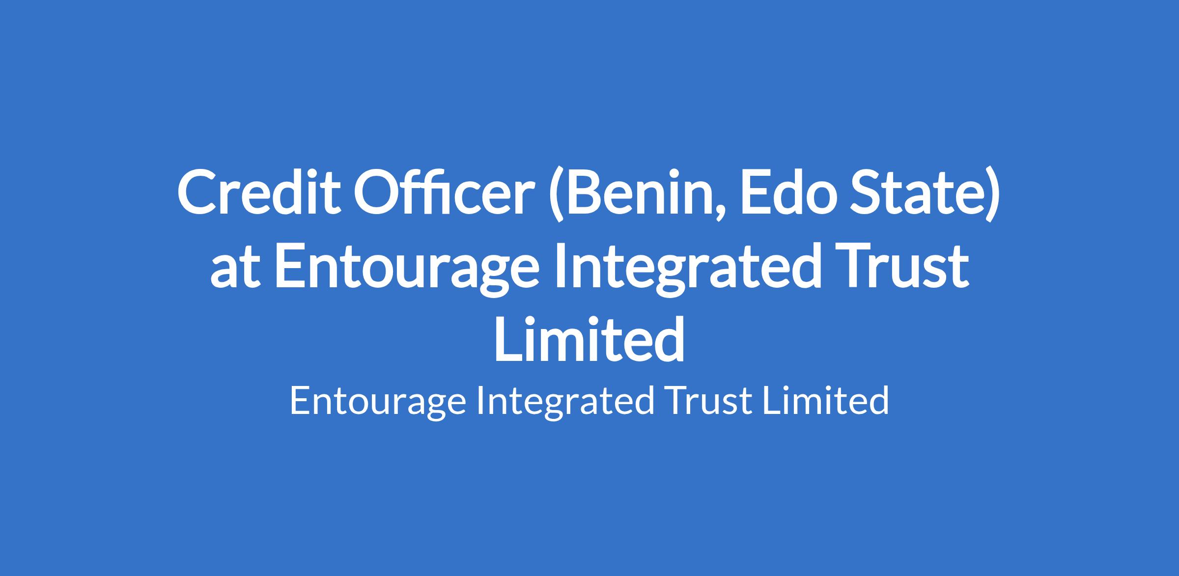 ENTOURAGE INTEGRATED TRUST LIMITED is looking for a CREDIT OFFICER to facilitate lending for our clients by assessing creditworthiness and processing relevant paperwork in BENIN, EDO STATE.