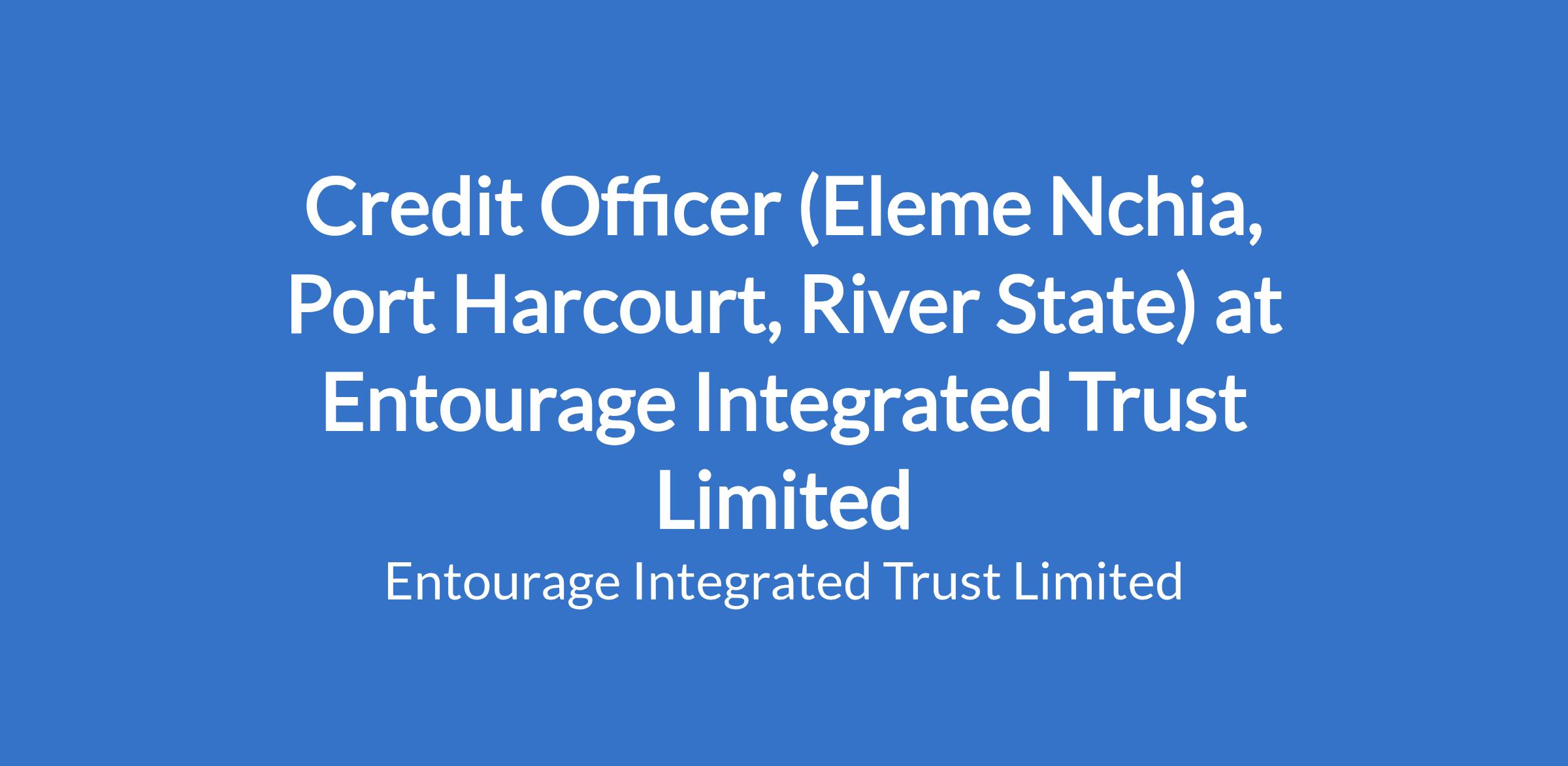 ENTOURAGE INTEGRATED TRUST LIMITED is looking for a CREDIT OFFICER to facilitate lending for our clients by assessing creditworthiness and processing relevant paperwork in PORT HARCOURT, RIVERS STATE.