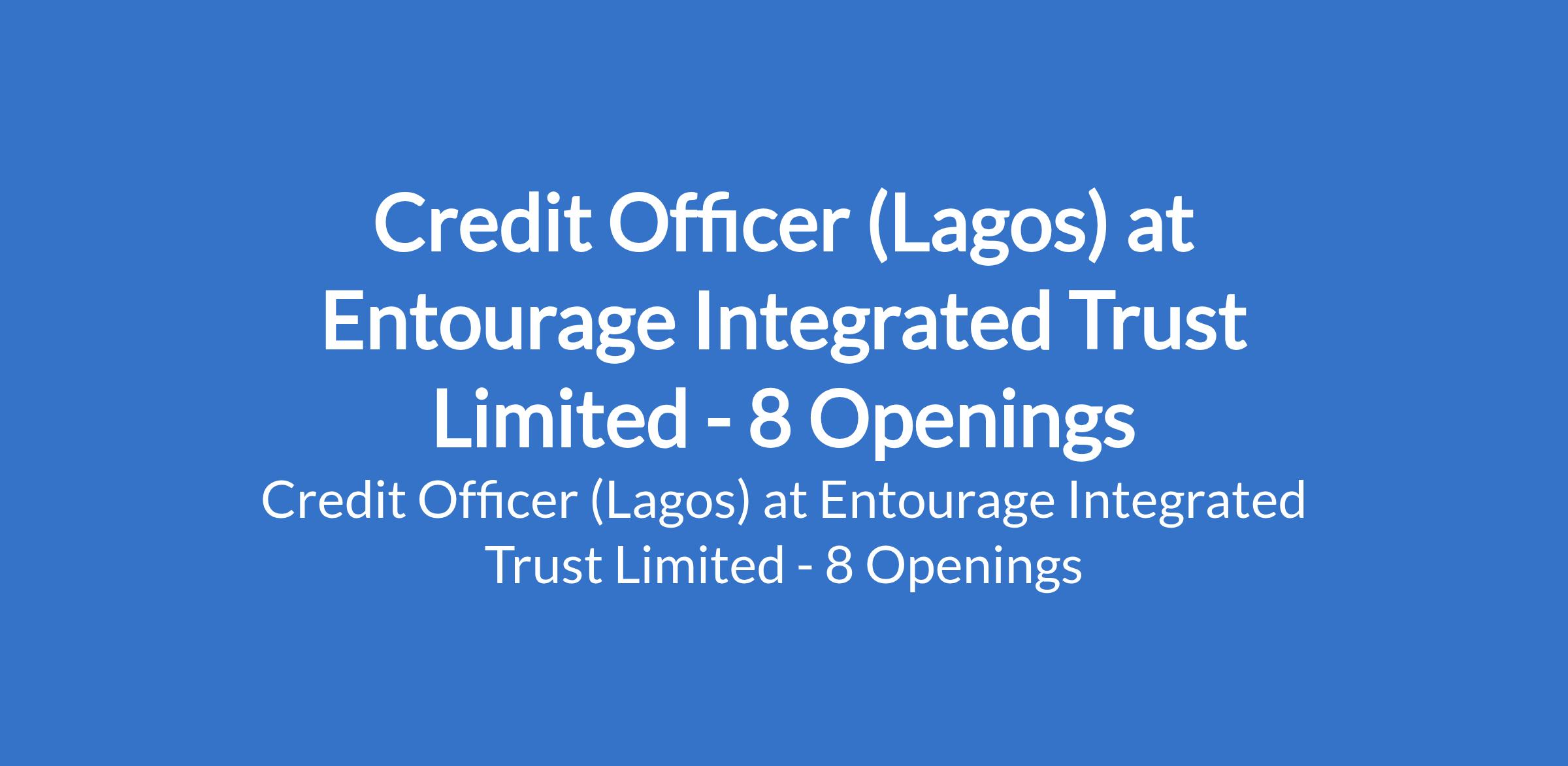 Entourage Integrated Trust Limited is recruiting to fill the position of: Credit Officer. The position is located in Mushin, Isolo, Council, Ejigbo, Satellite, Festac, Alagbole, & Oshodi - Lagos State. Salary: N104,000 / month. Interested candidates should possess an NCE / OND / HND / B.Sc in Banking and Finance, Economics, or a related field with proven work experience as a Credit Officer, loan officer, or similar role.