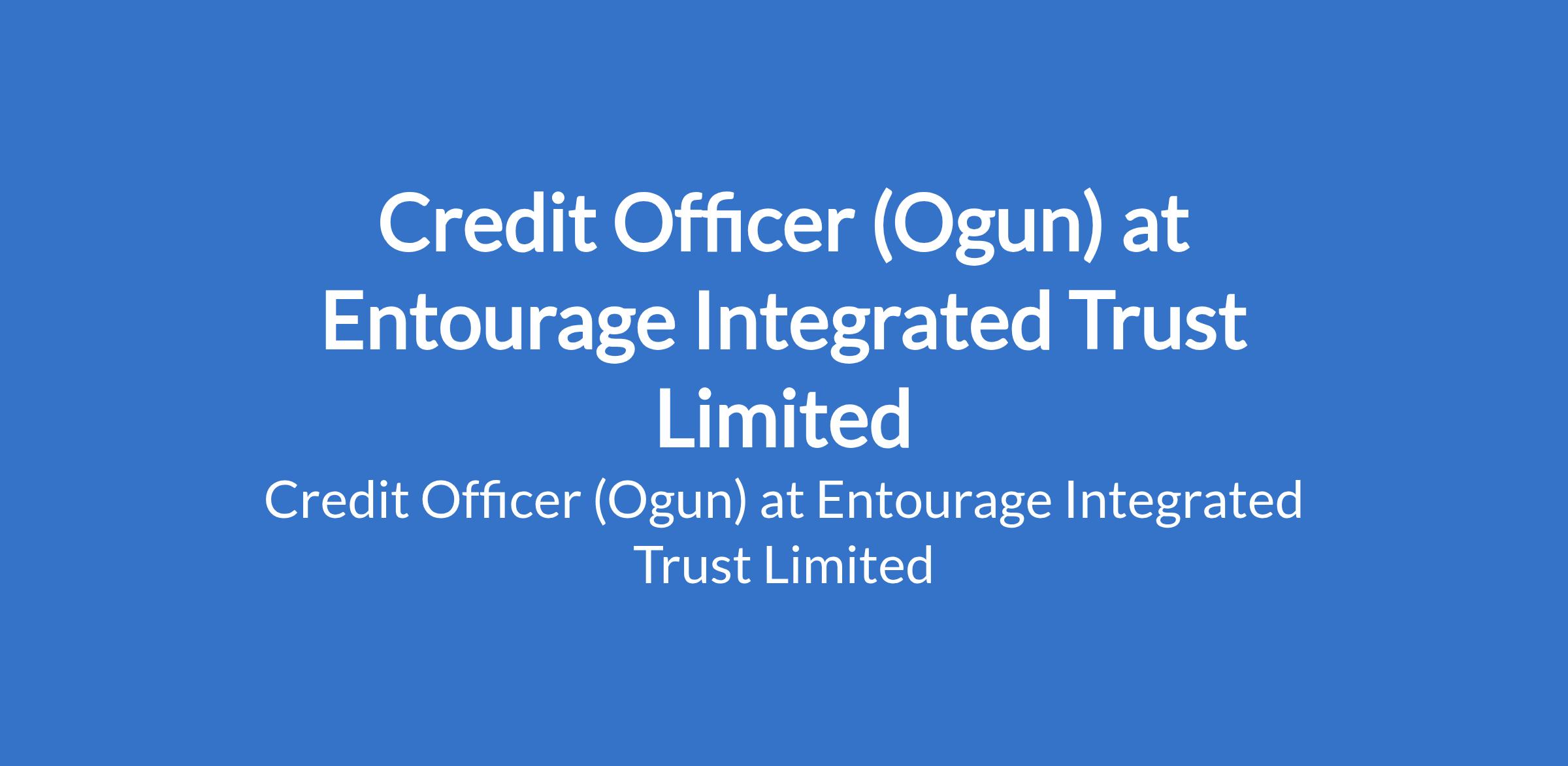 Entourage Integrated Trust Limited is recruiting to fill the position of: Credit Officer. The position is located in Abeokuta, Ogun State. Salary: N104,000 monthly. Interested candidates should possess an NCE / OND / HND / BSc. Degree in Banking and Finance, Economics, or related field with proven work experience as a Credit Officer, Loan Officeror similar role.