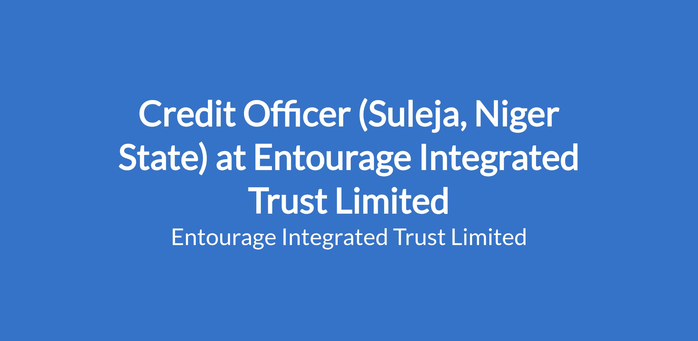 ENTOURAGE INTEGRATED TRUST LIMITED is looking for a CREDIT OFFICER to facilitate lending for our clients by assessing creditworthiness and processing relevant paperwork in SULEJA, NIGER STATE.