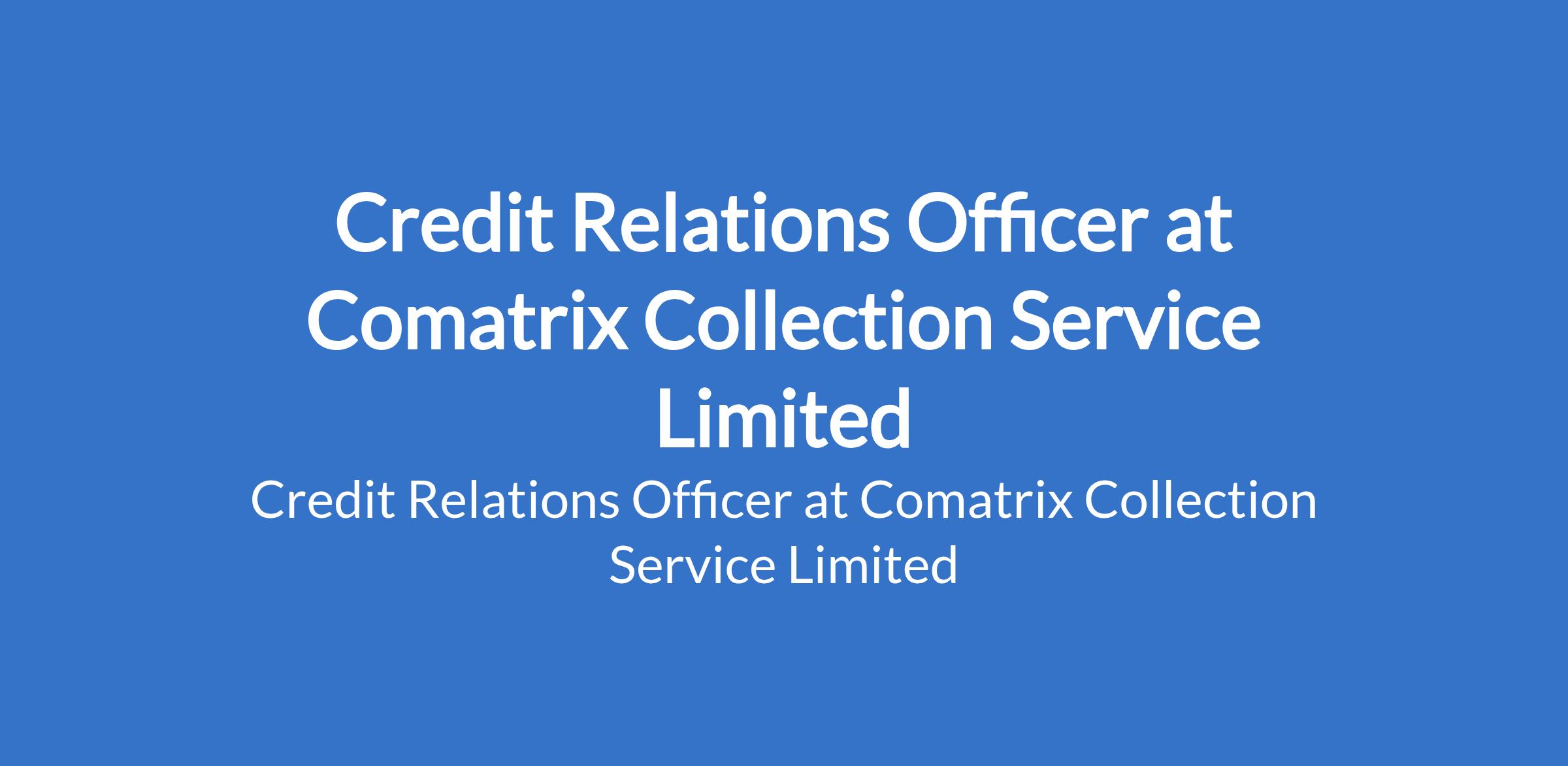 Comatrix Collection Service Limited is recruiting to fill the position of: Credit Relations Officer. The position is located in Jankara - ijaiye, Lagos State. Salary: N60,000 - N75,000 per month. Interested candidates should possess an SSCE / NCE / OND / HND / B.Sc and relevant work experience.