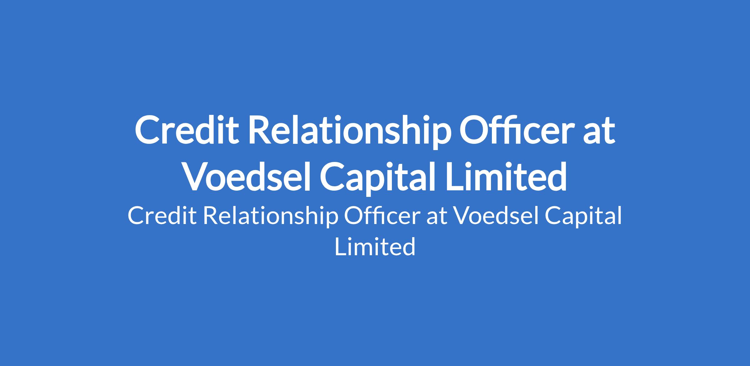 Voedsel Capital Limited is recruiting to fill the position of: Credit Relationship Officer. The position is located in Ikeja /Lekki, Lagos State. Salary: N150,000 - N250,000 monthly. Interested candidates should possess a Bachelor's Degree in a business related field, Economics, Finance, Accounting or equivalent with 2_3 years experience as a credit Relationship officer or related role.