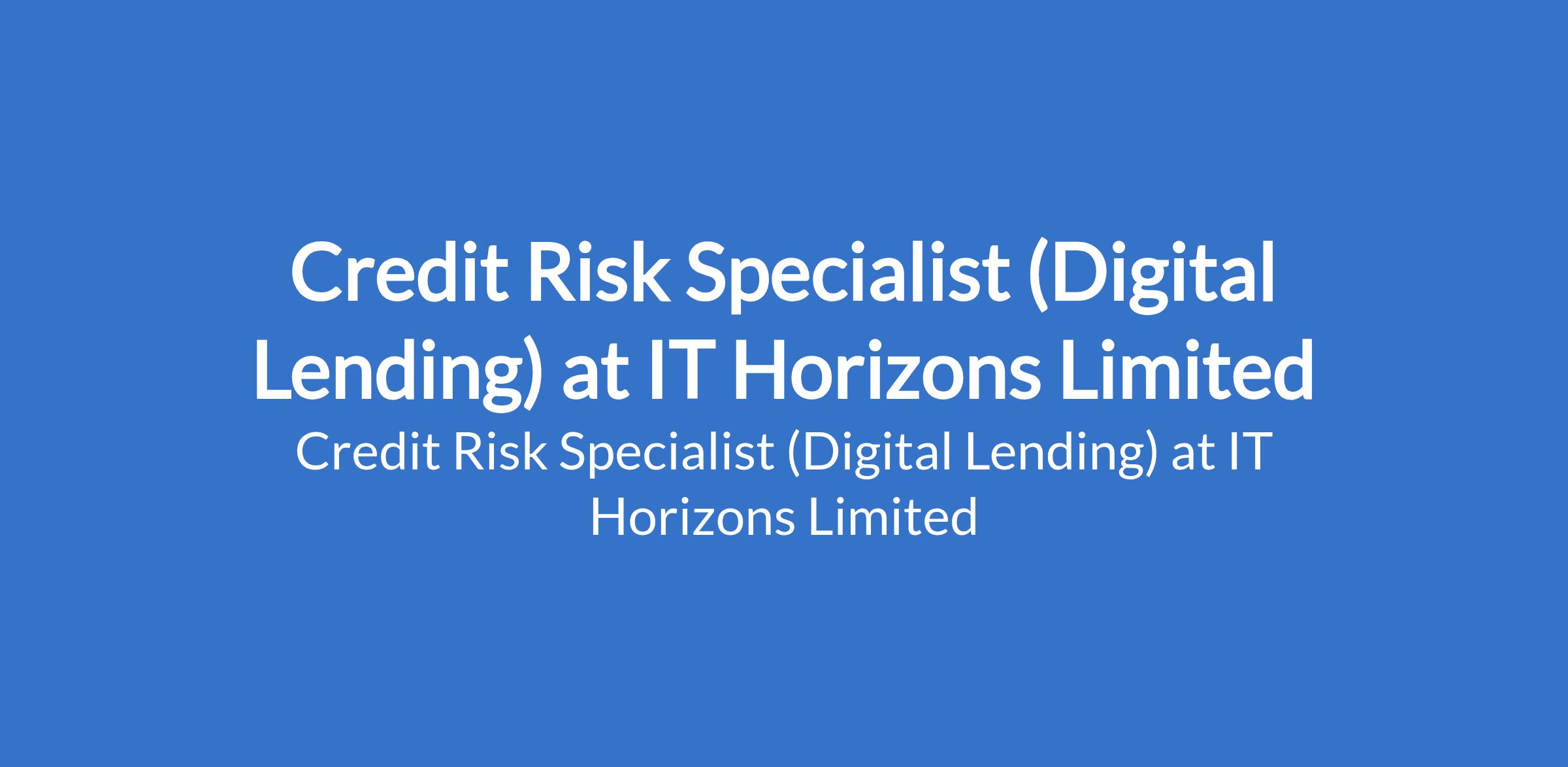IT Horizons Limited is recruiting to fill the position of: Credit Risk Specialist (Digital Lending). The position is located in Lagos State. Interested candidates should possess a Bachelors Degree (B.Sc) in a numerate discipline such as Economics, Accounting, Finance, Statistics, Mathematics, Engineering, or related fields with 57 years cognate experience in credit risk management within digital lending, FinTech, microfinance, or technology-enabled financial services.
