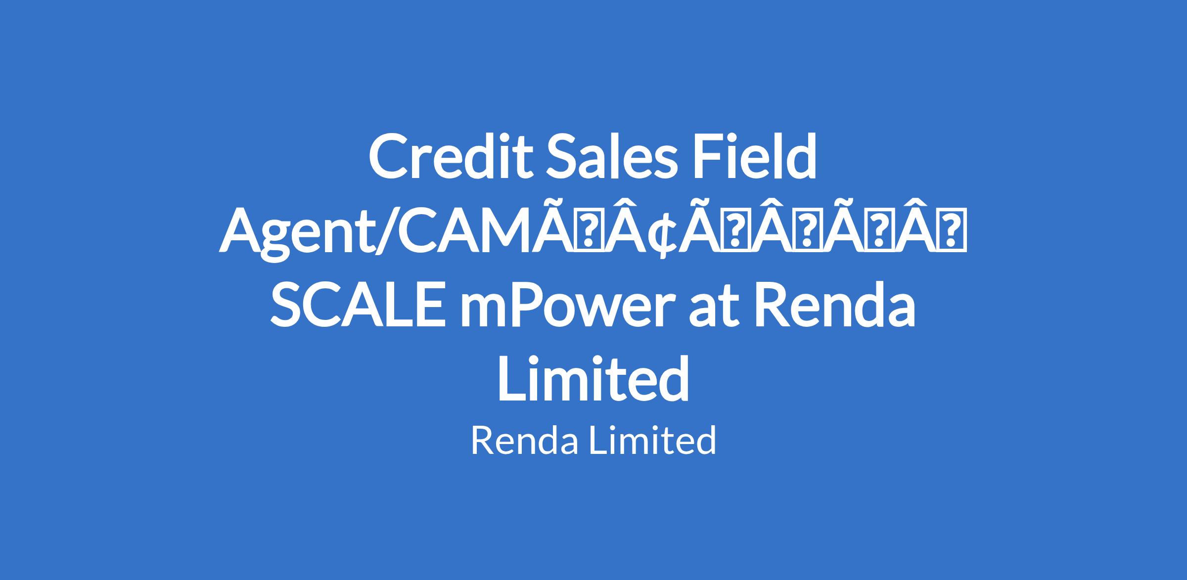 Credit Sales Field Agent/CAMâÃÂàSCALE mPower at Renda Limited