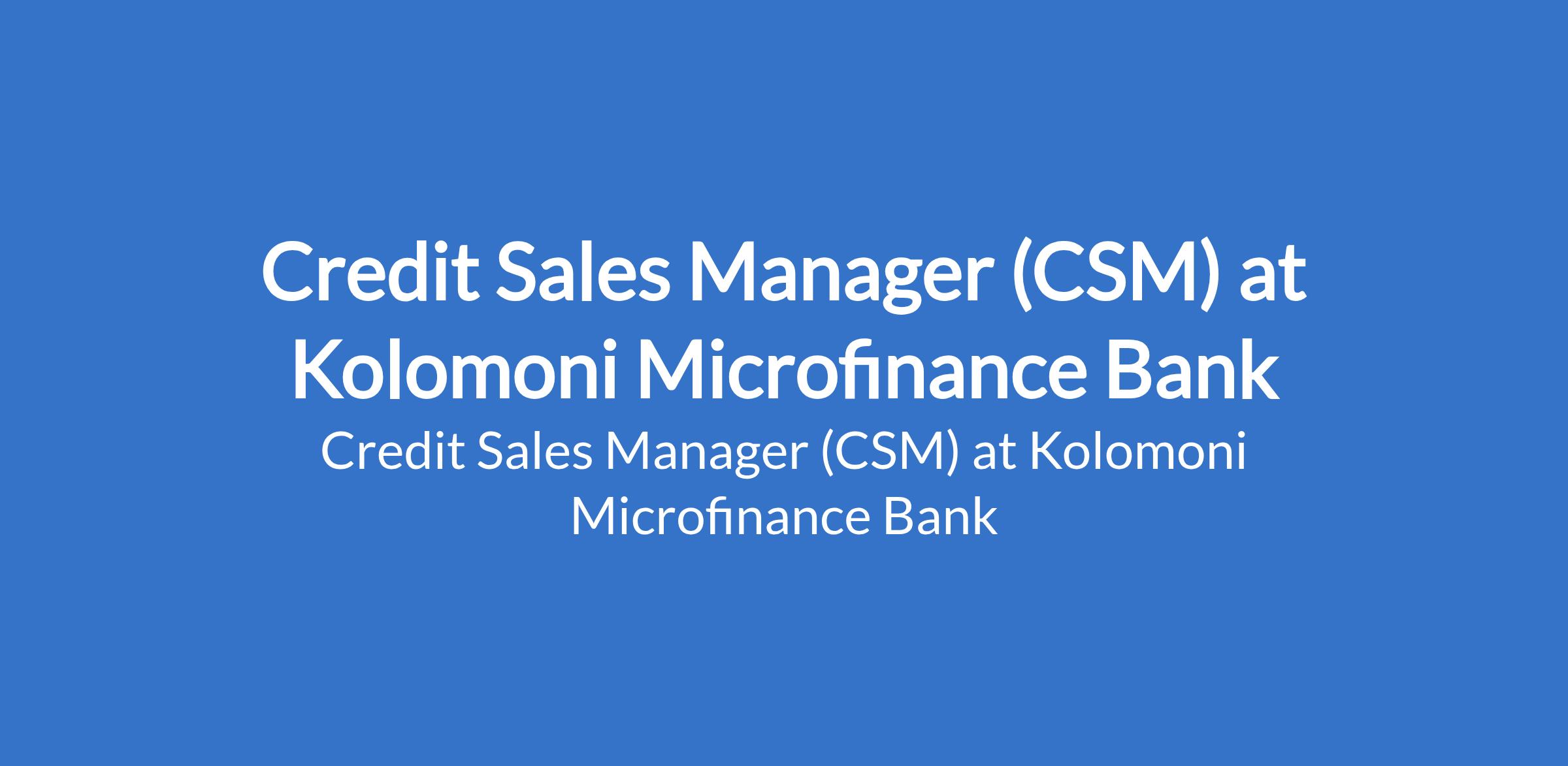 Kolomoni Microfinance Bank is recruiting to fill the position of: Credit Sales Manager (CSM). The position is located in Ibadan, Oyo State. Interested candidates should possess a Bachelors Degree in Finance, Business Administration, Marketing, Economics, or a related field with 6 - 8 years experience in credit sales or business banking.