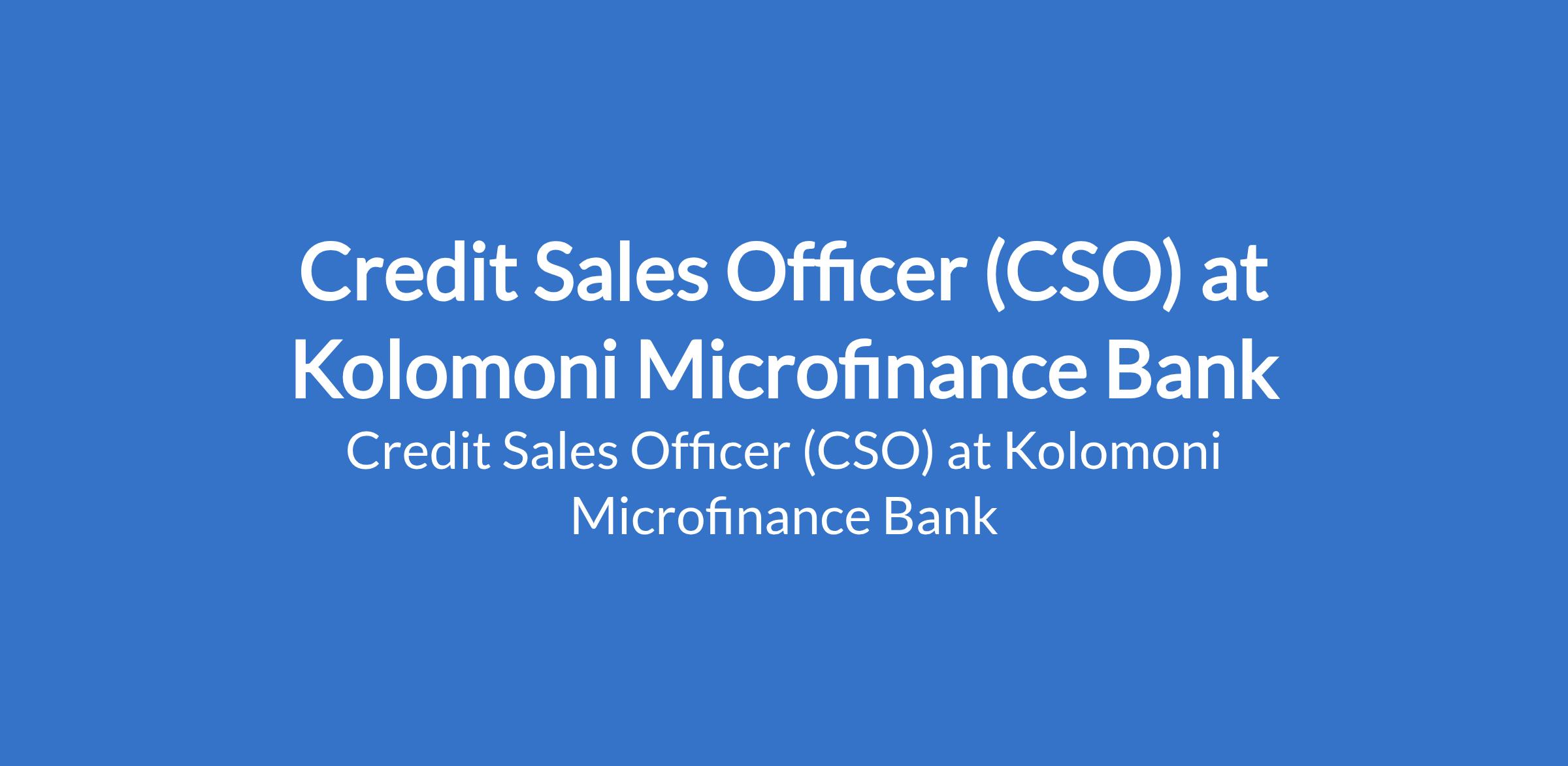 Kolomoni Microfinance Bank is recruiting to fill the position of: Credit Sales Officer (CSO). The position is located in Ibadan, Oyo State. Interested candidates should possess a Bachelors Degree in Business, Finance, Economics, Marketing, or a related field with 3 - 5 years experience in sales or credit marketing (preferably within microfinance or SME banking).