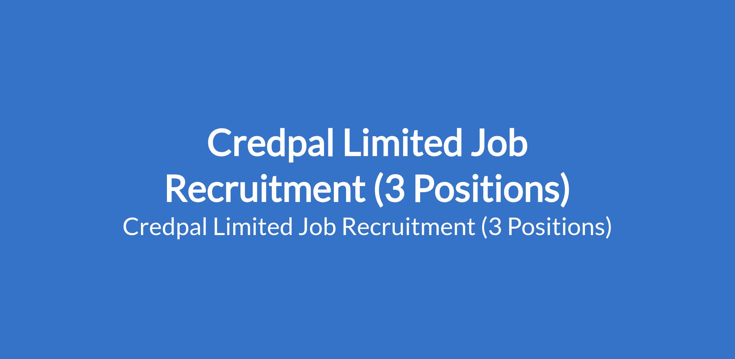 Credpal Limited is recruiting suitable candidates to fill the following positions in Lagos States: Junior Internal Auditor, Senior Accountant, Product QA Engineer.