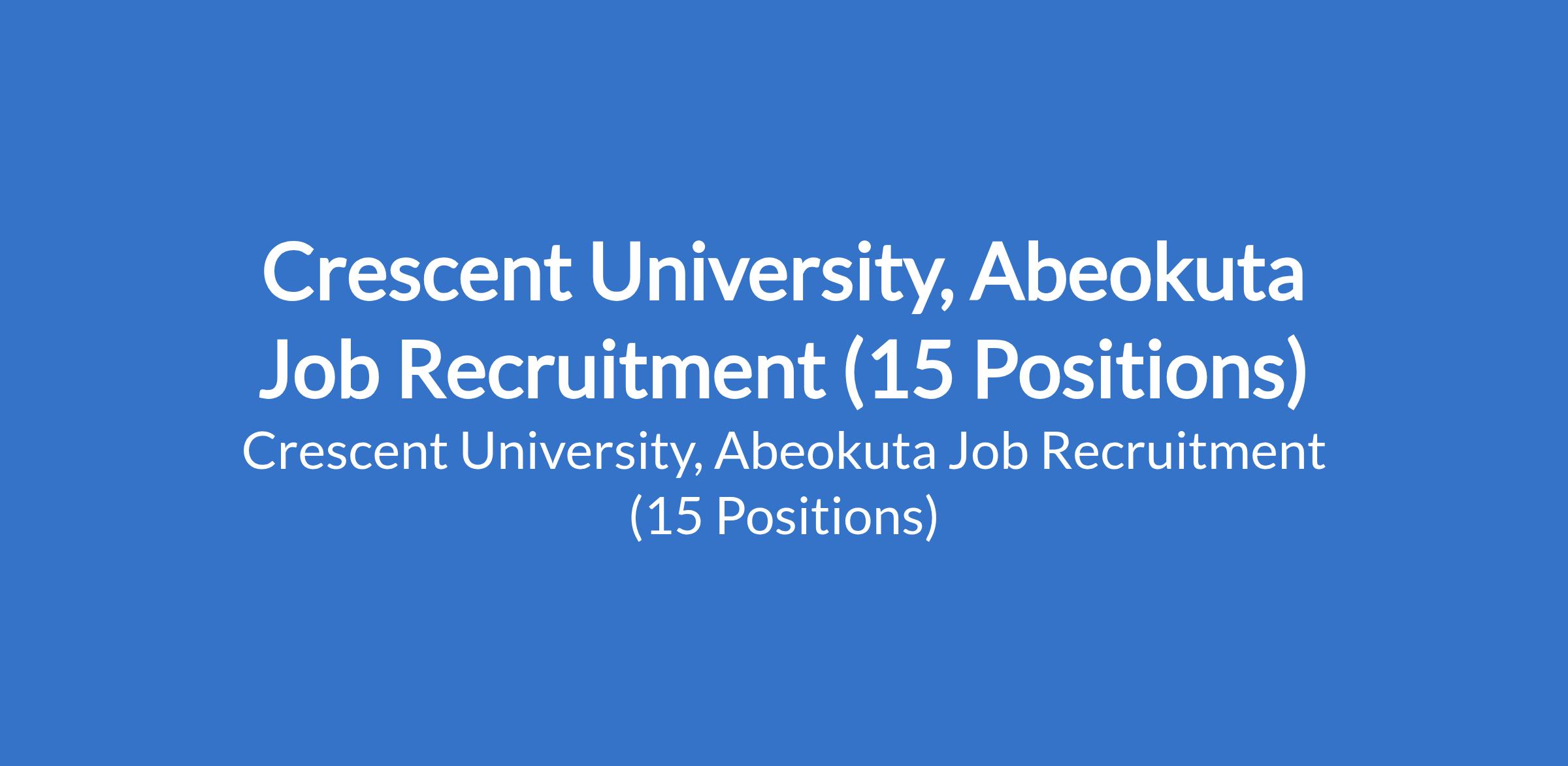 Crescent University, Abeokuta Job Recruitment (15 Positions)
