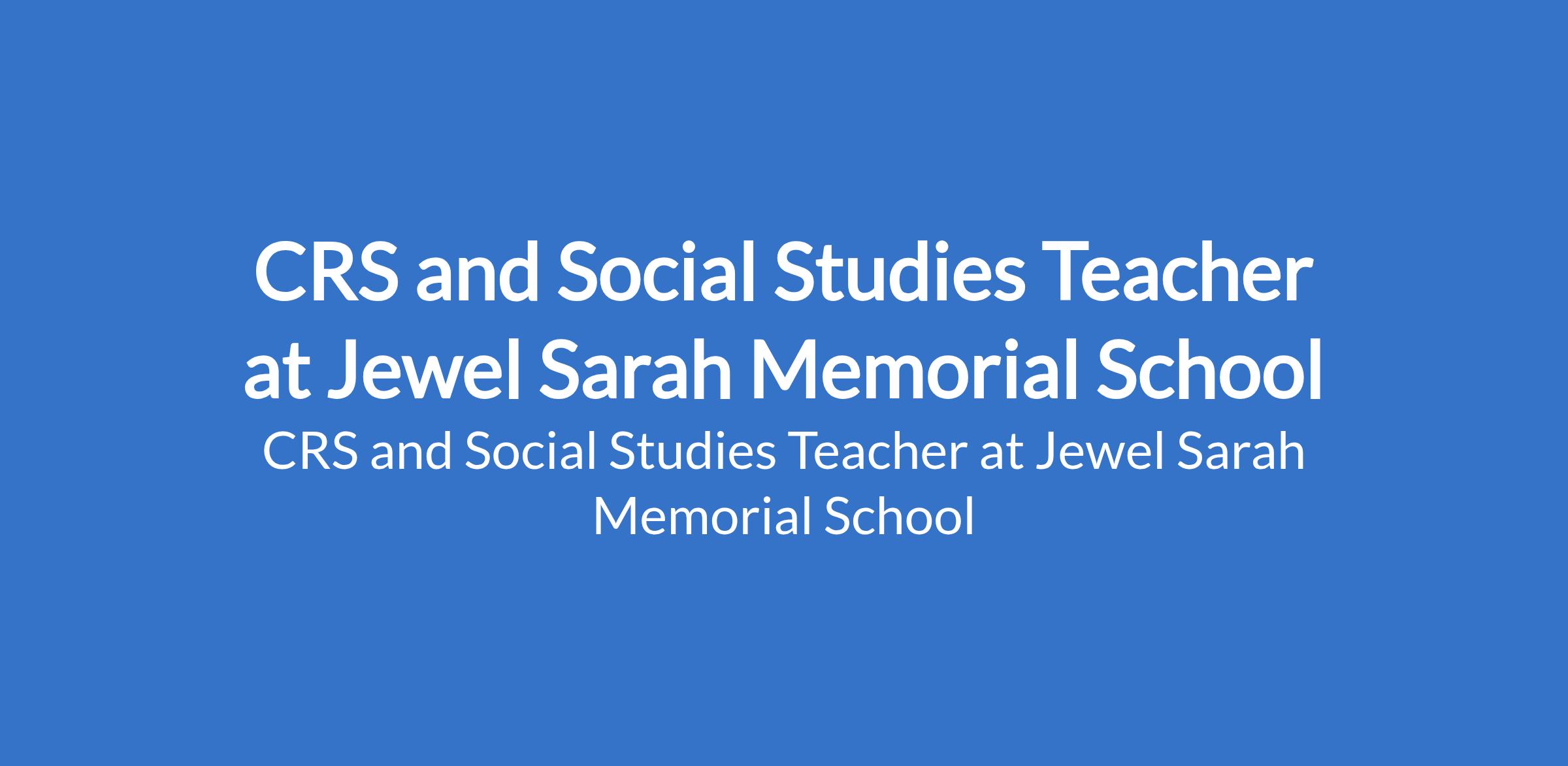 CRS and Social Studies Teacher at Jewel Sarah Memorial School