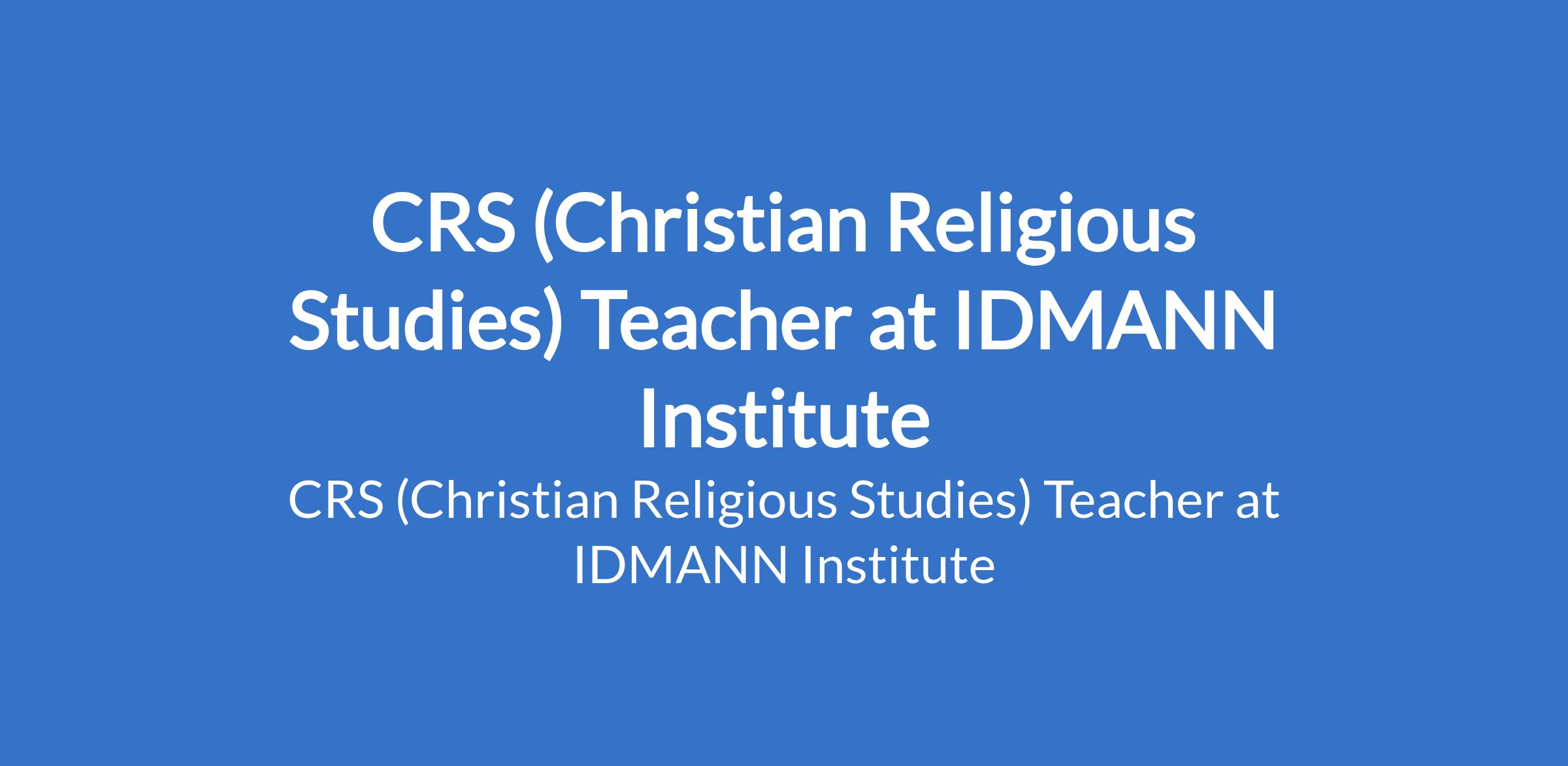 IDMANN Institute is recruiting to fill the position of: CRS (Christian Religious Studies) Teacher. The position is located in Aba, Abia State. Interested candidates should possess minimum of a Bachelors Degree (B.A / B.Ed) in Christian Religious Studies, Religious Studies or a related field with 23 years teaching experience.