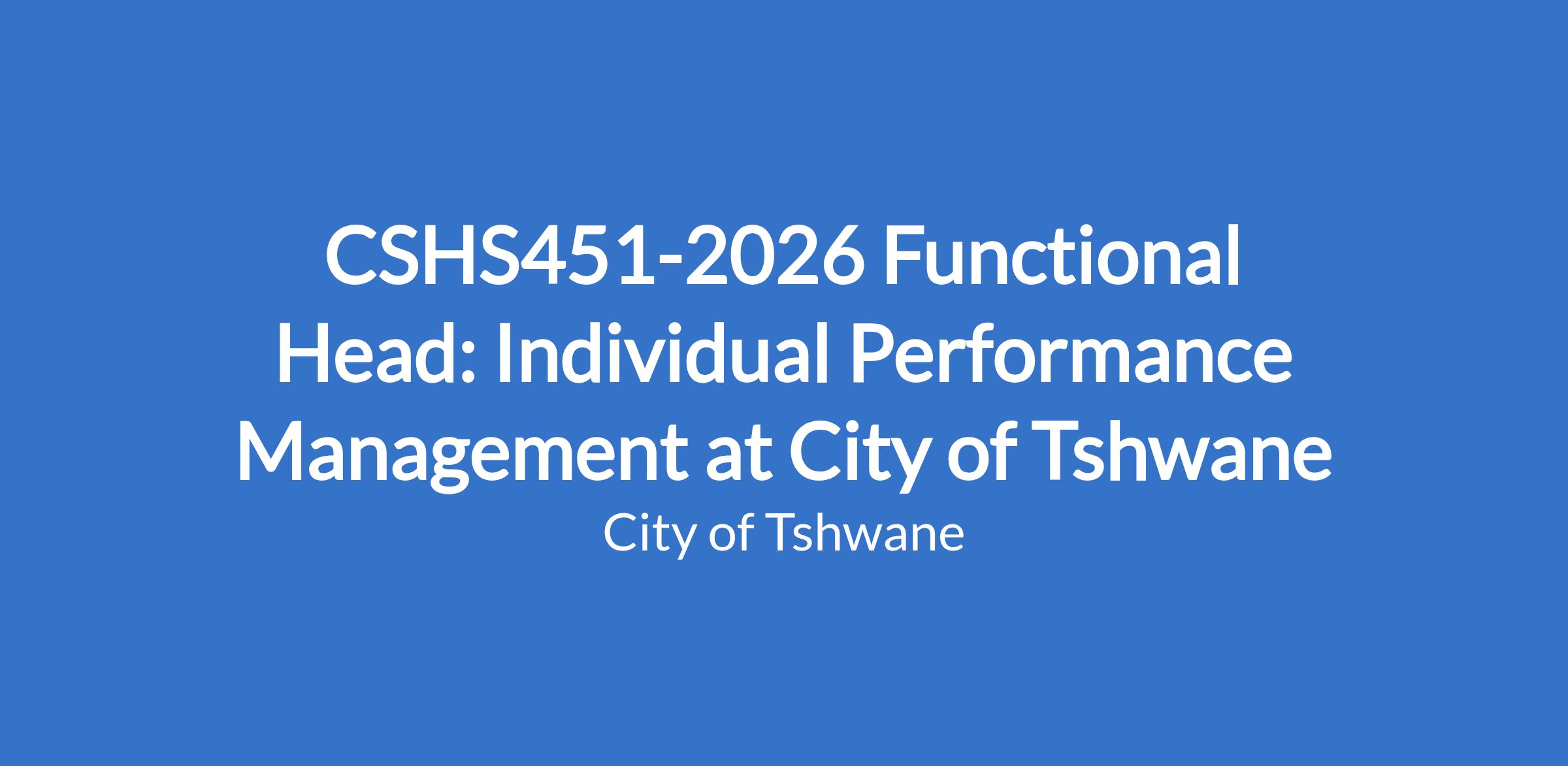 CSHS451-2026 Functional Head: Individual Performance Management at City of Tshwane