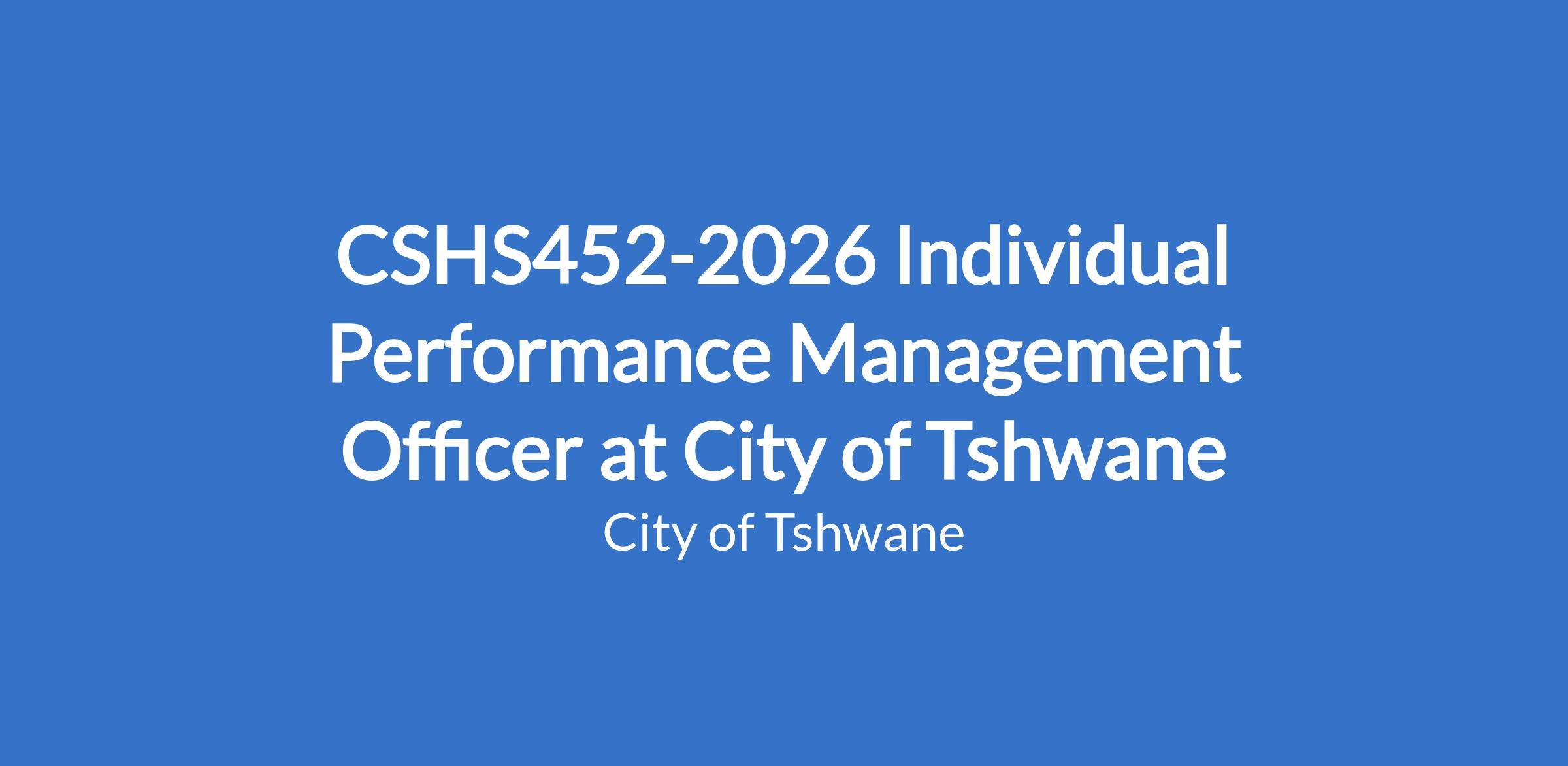 CSHS452-2026 Individual Performance Management Officer at City of Tshwane