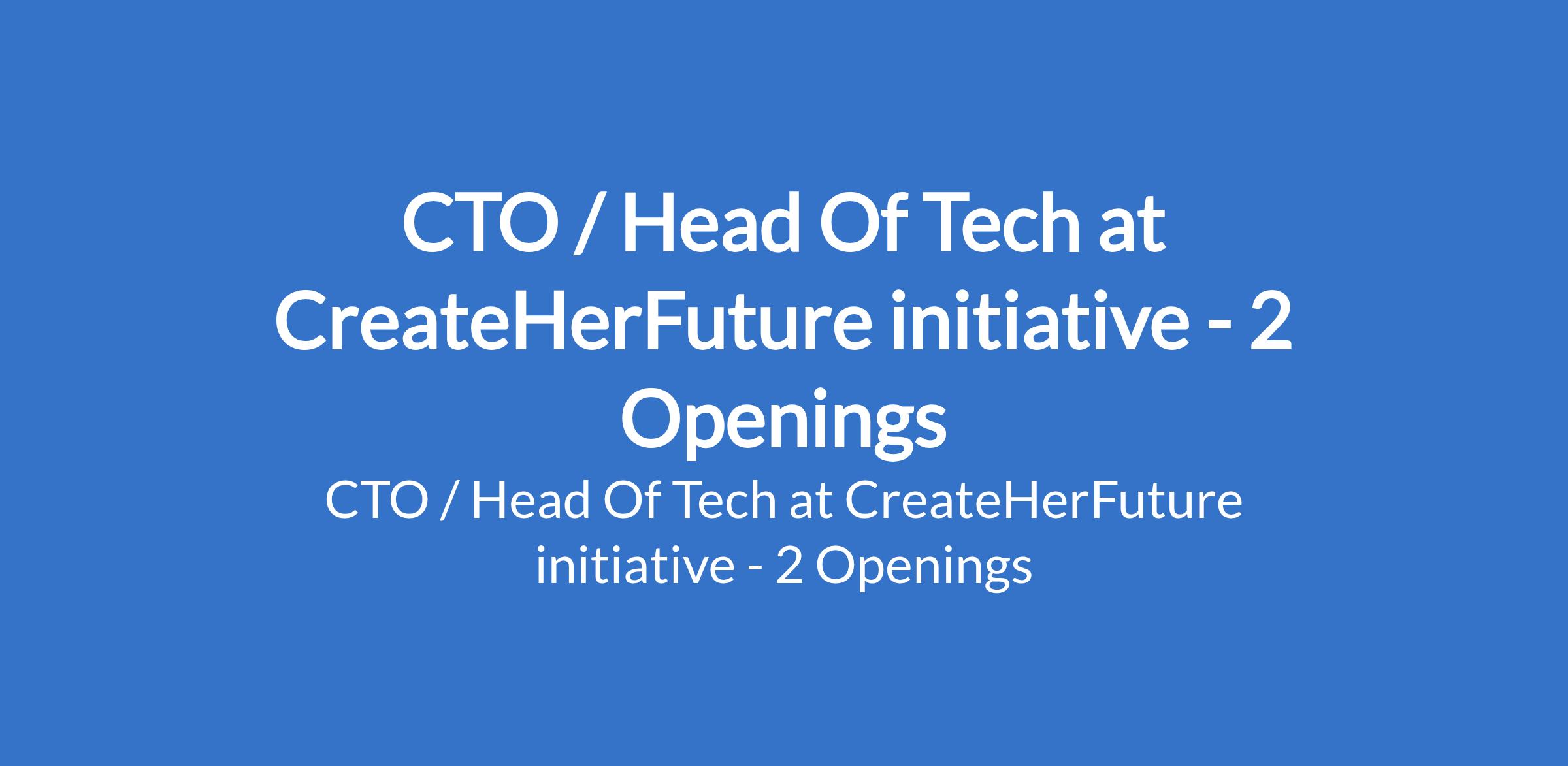 CreateHerFuture initiative is recruiting to fill the position of: CTO / Head Of Tech. The position is located in Abuja / Lagos State. Interested candidates should possess a Bachelor's or Master's Degree in a relevant technical field with 5+ years of technical leadership experience.