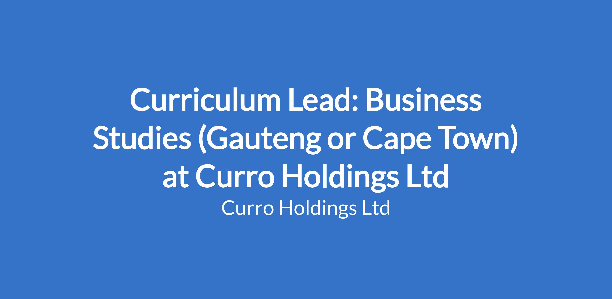 Curriculum Lead: Business Studies (Gauteng or Cape Town) at Curro Holdings Ltd