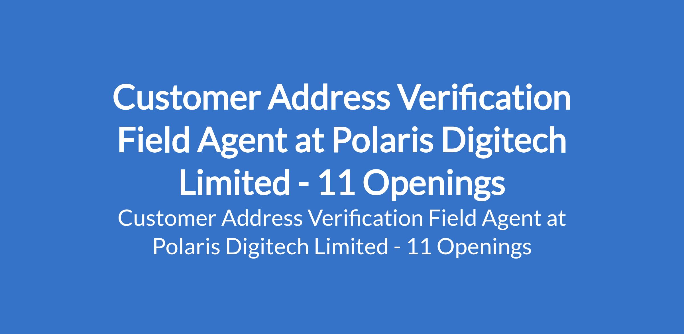 Polaris Digitech Limited is recruiting to fill the position of: Customer Address Verification Field Agent. The position is located in Edo, Katsina, Kwara, Lagos, Ogun, Oyo, Akwa Ibom, Ekiti, Gombe, Jigawa and Rivers States. Interested candidates should possess relevant qualifications with years of work experience.