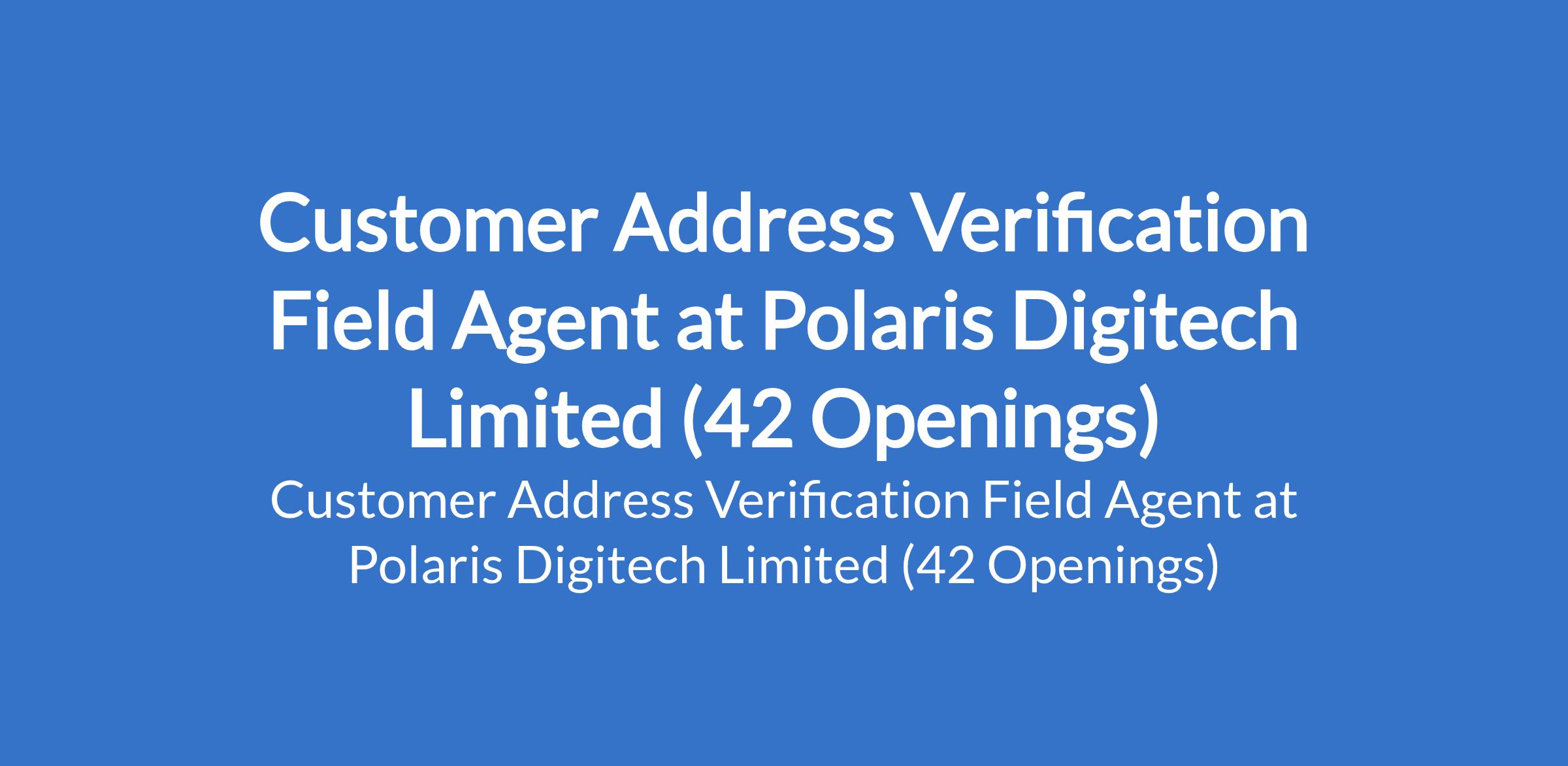 Customer Address Verification Field Agent at Polaris Digitech Limited (42 Openings)