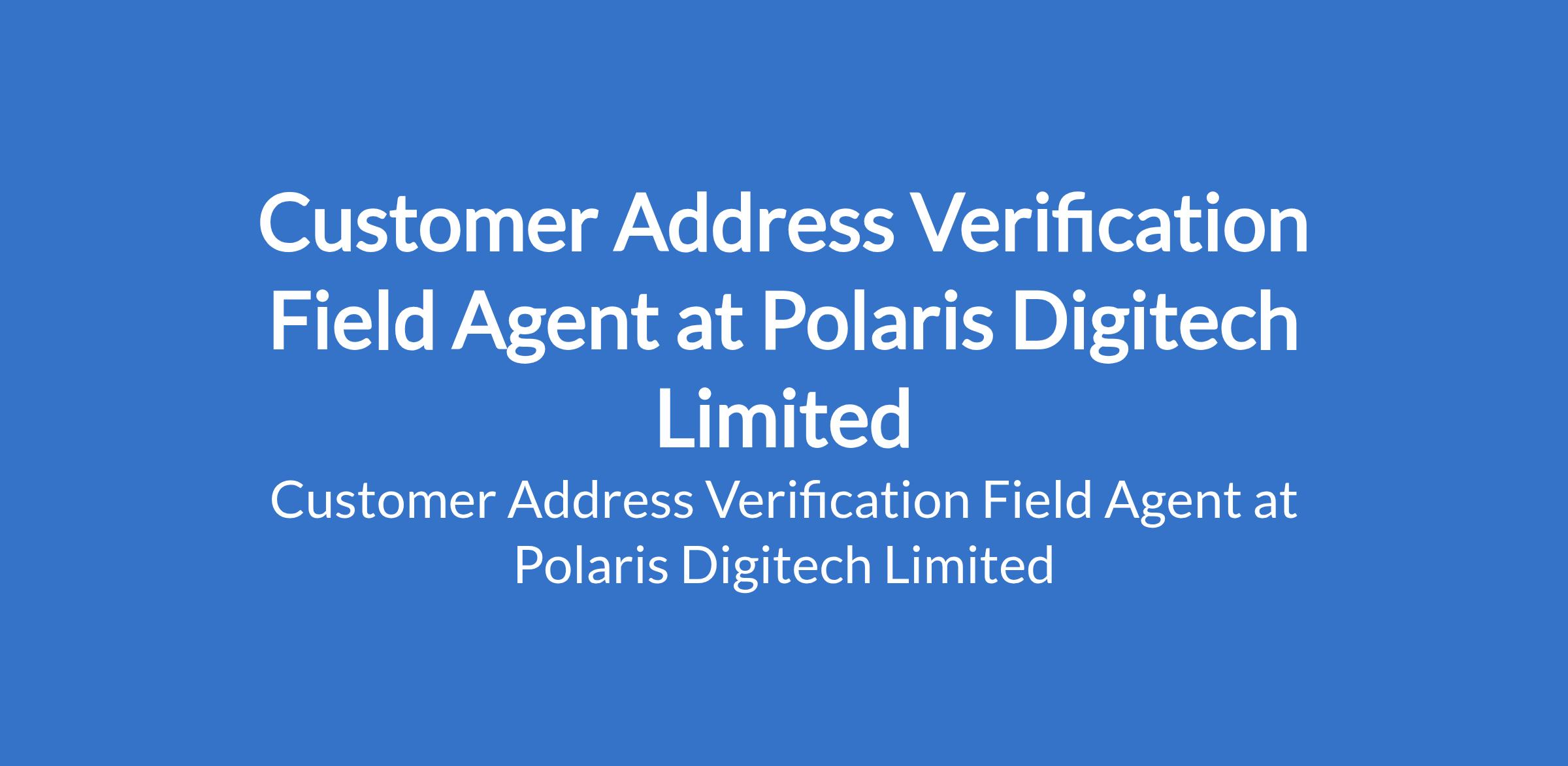 Customer Address Verification Field Agent at Polaris Digitech Limited