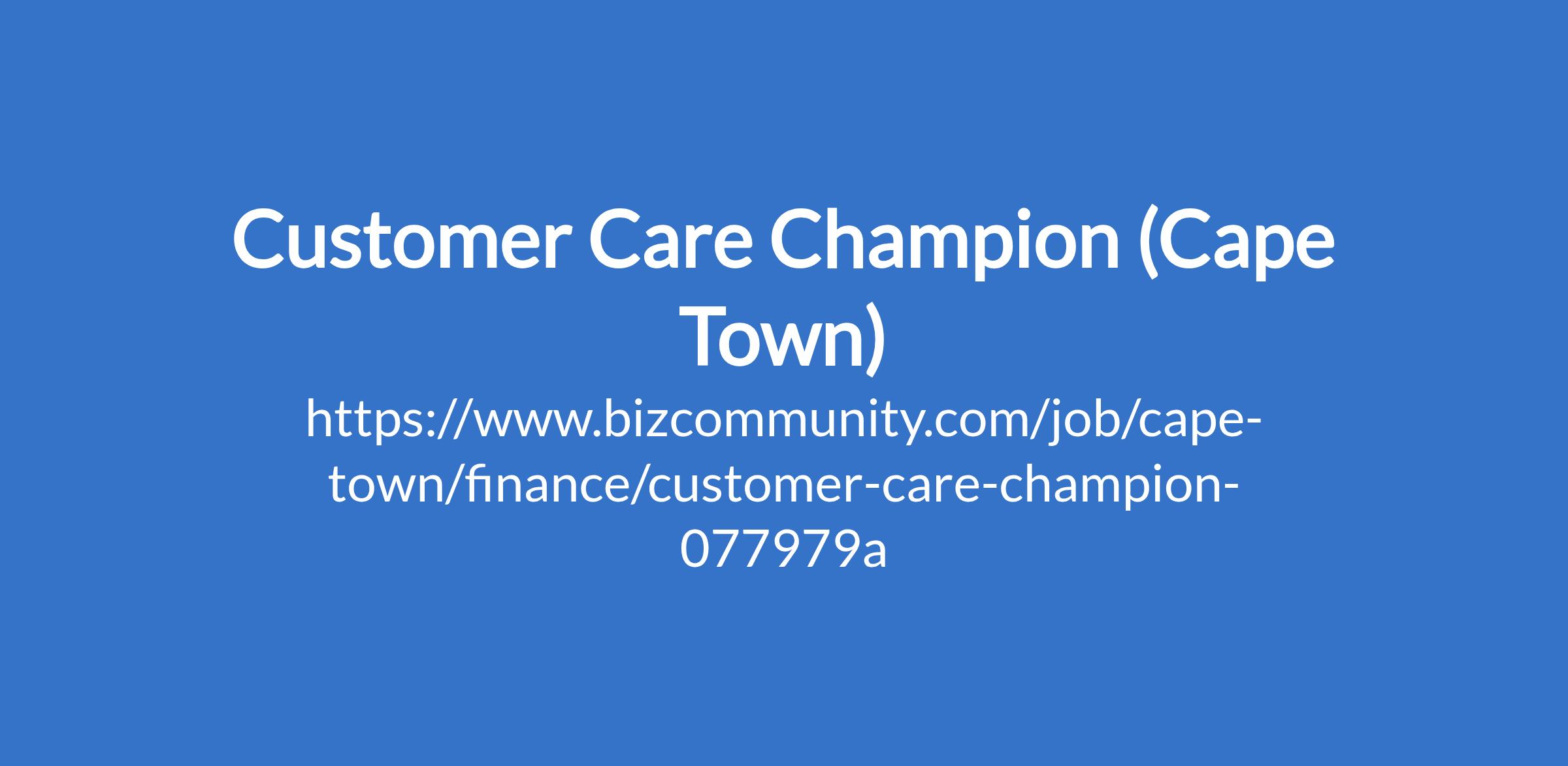https://www.bizcommunity.com/job/cape-town/finance/customer-care-champion-077979a