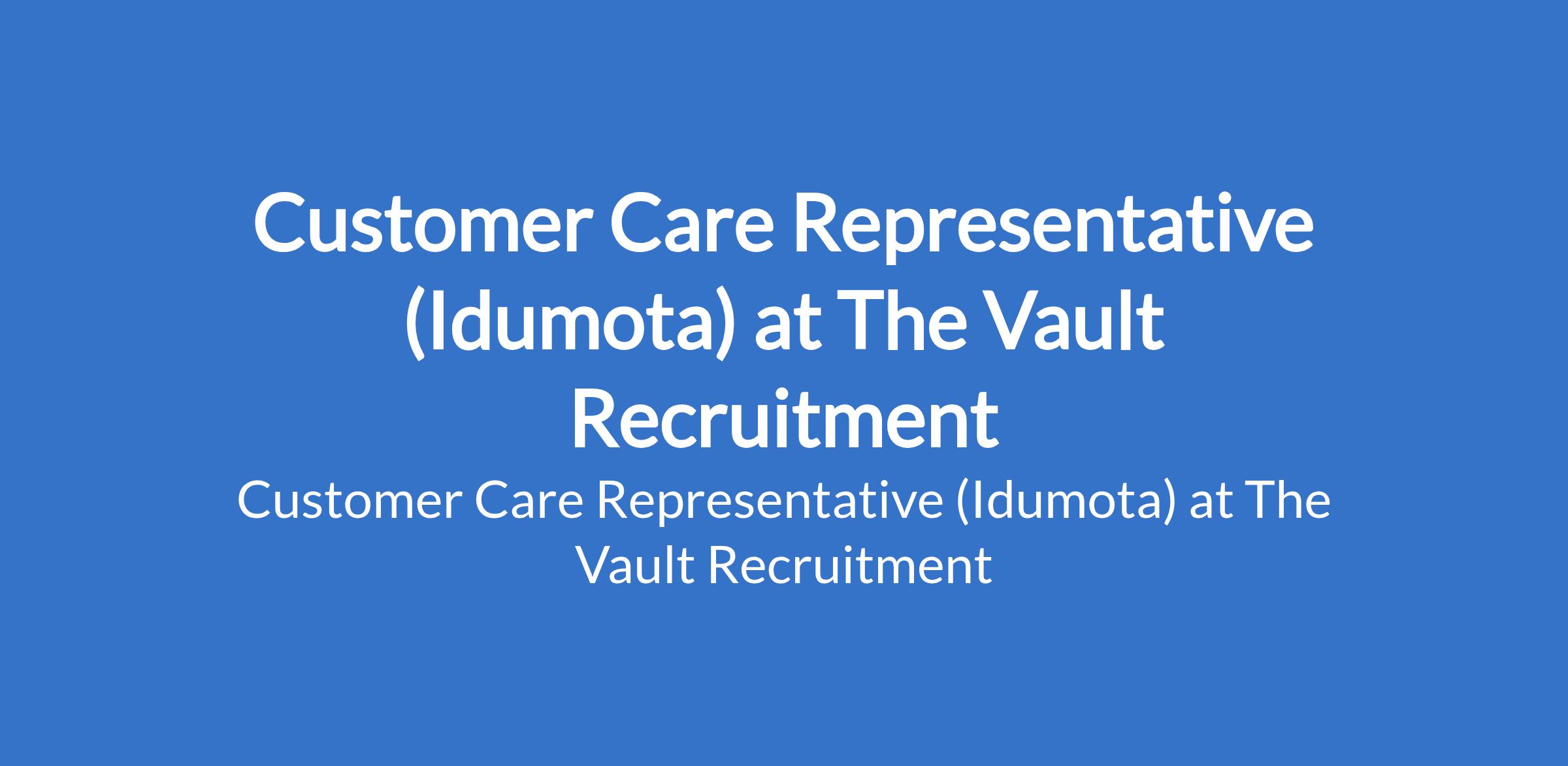 The Vault Recruitment is recruiting to fill the position of: Customer Care Representative. The position is located in Idumota, Lagos State. Salary: N80,000 per month. Interested candidates should possess a minimum of SSCE or ND qualification with 01 year experience in a customer service role (preferred).