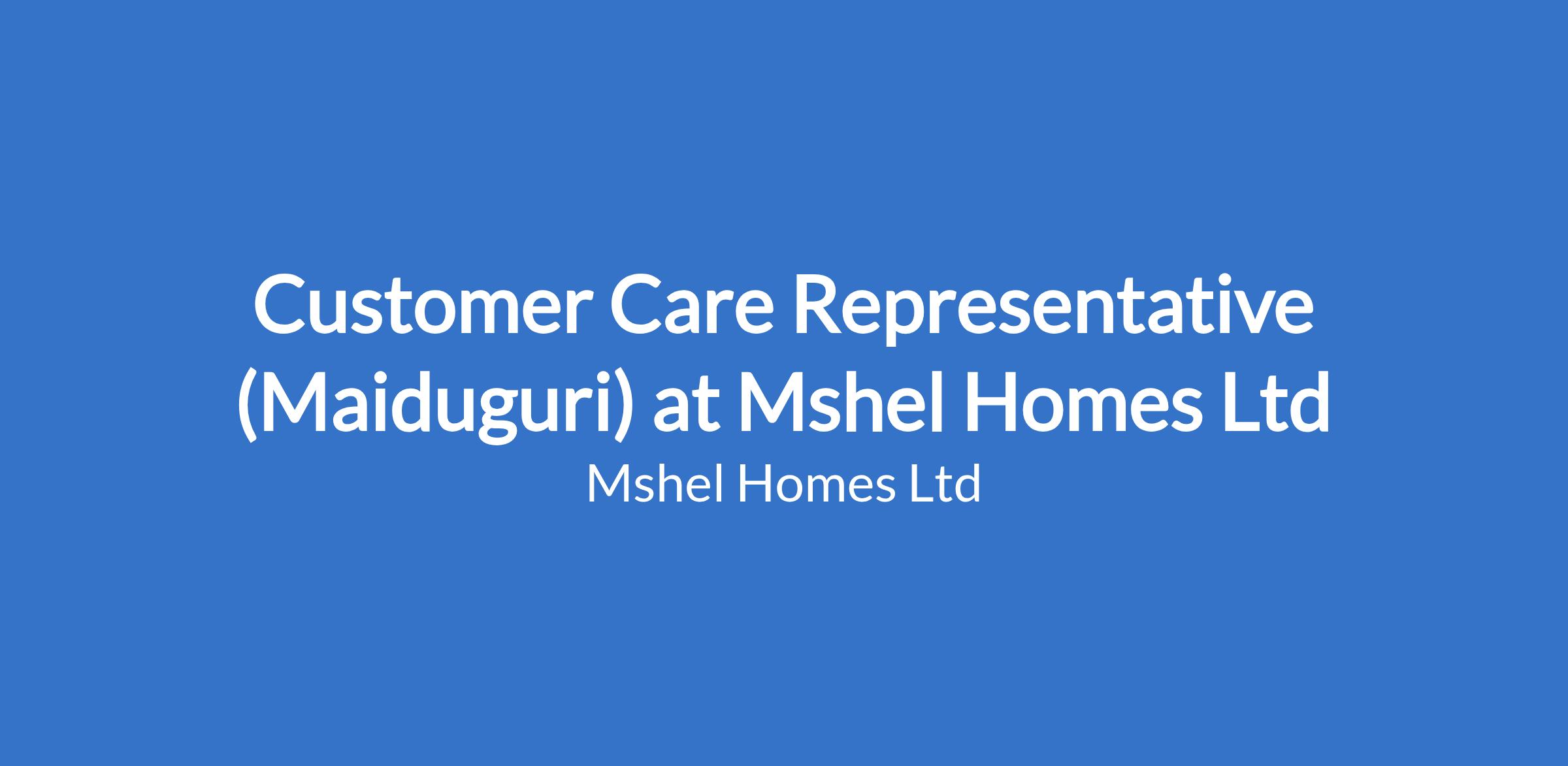 Customer Care Representative (Maiduguri) at Mshel Homes Ltd