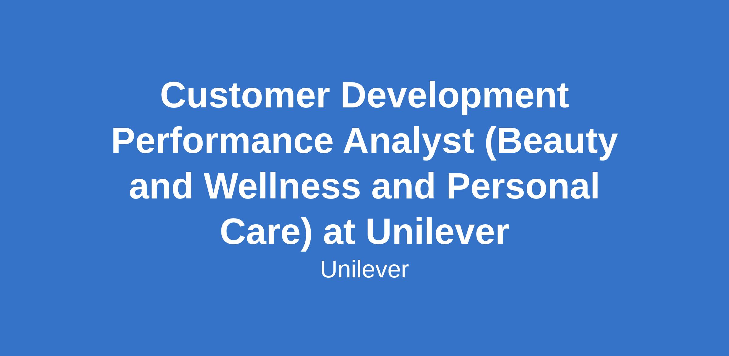 Customer Development Performance Analyst (Beauty and Wellness and Personal Care) at Unilever