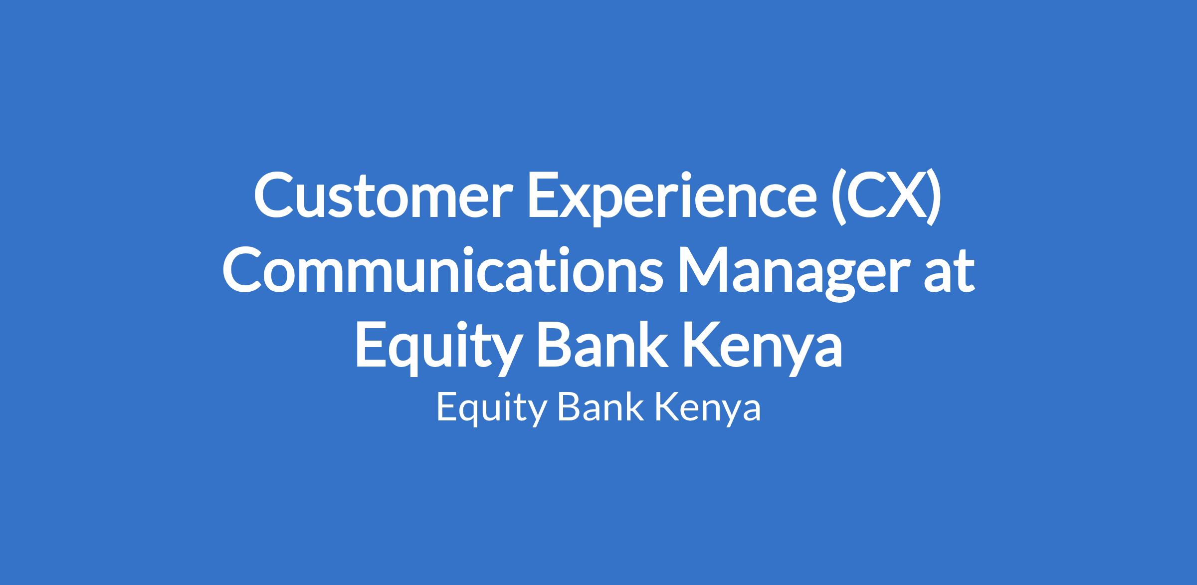 Customer Experience (CX) Communications Manager at Equity Bank Kenya