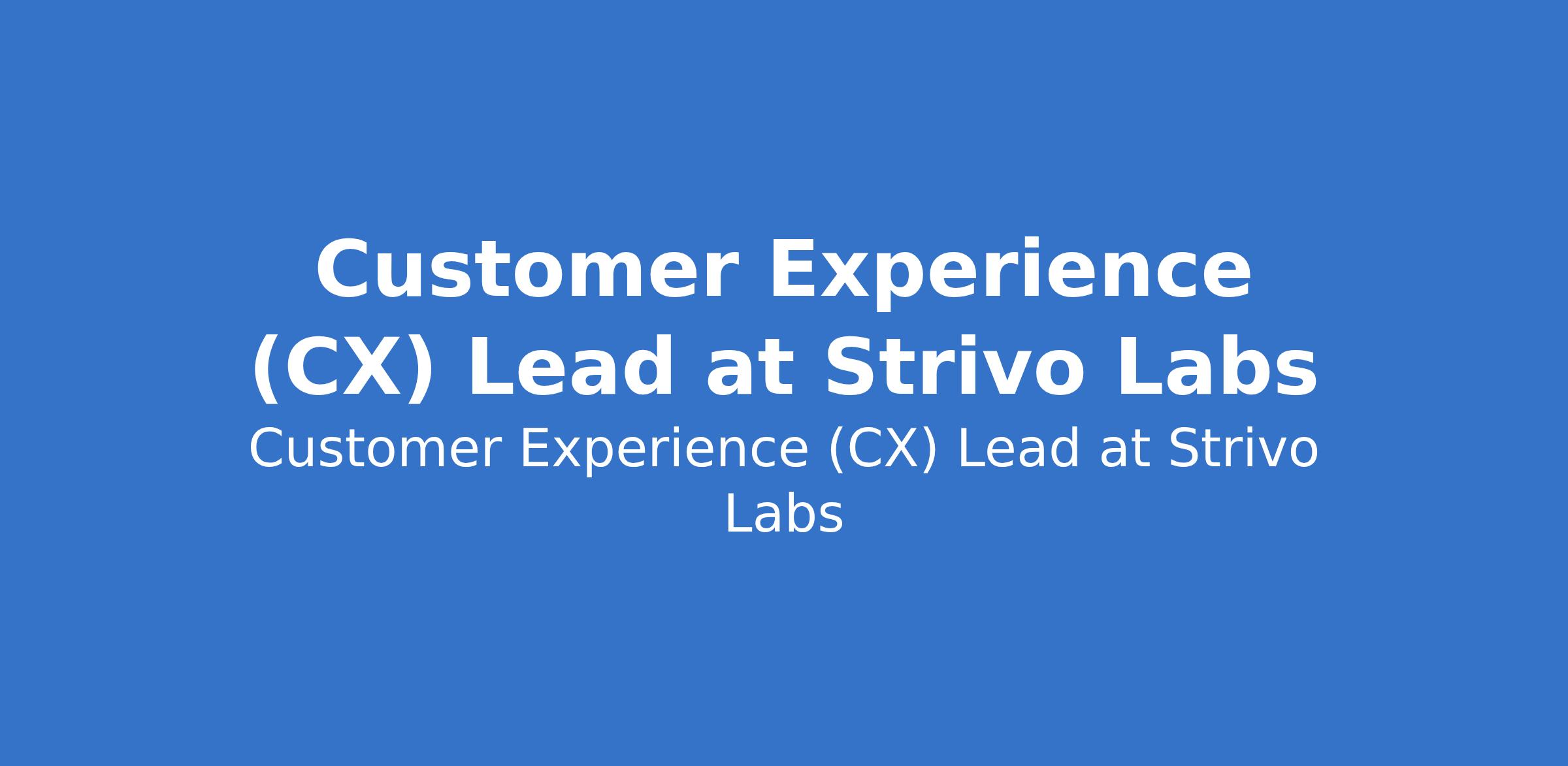 Strivo Labs is recruiting to fill the position of: Customer Experience (CX) Lead. The position is located in Lagos State. Interested candidates should possess a Bachelors Degree in Business, Finance, Communications, or a related field with 5 8 years of experience in customer experience, customer success, or operations.