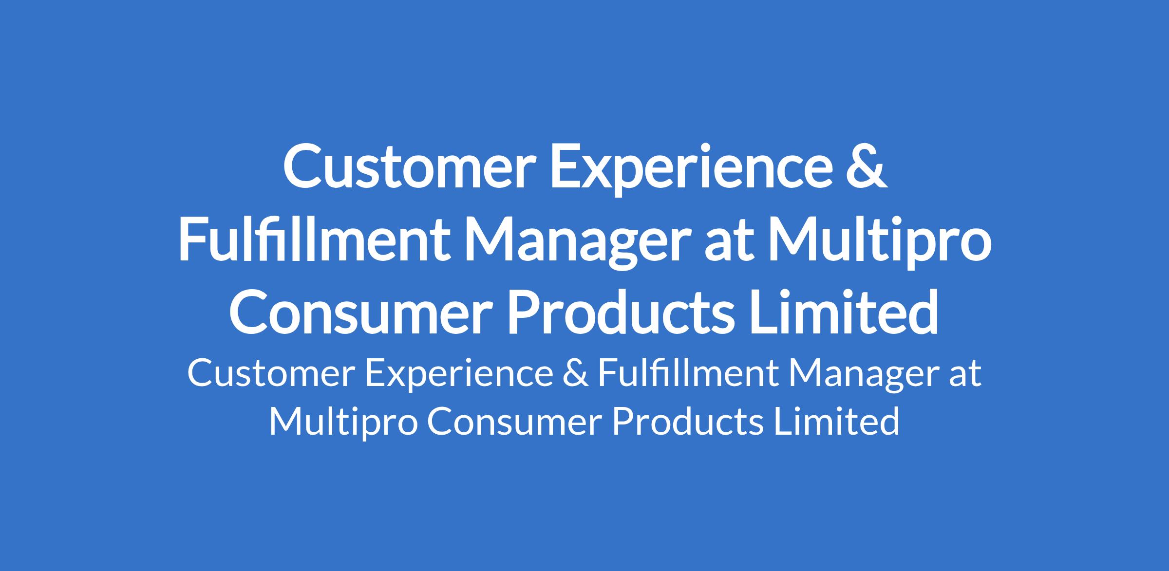 Multipro Consumer Products Limited is recruiting to fill the position of: Customer Experience & Fulfillment Manager. The position is located in Lagos State. Interested candidates should possess relevant qualifications with a minimum of 3 years of experience in customer support, logistics, or operations with prior experience in an e-commerce or retail environment is highly desirable.