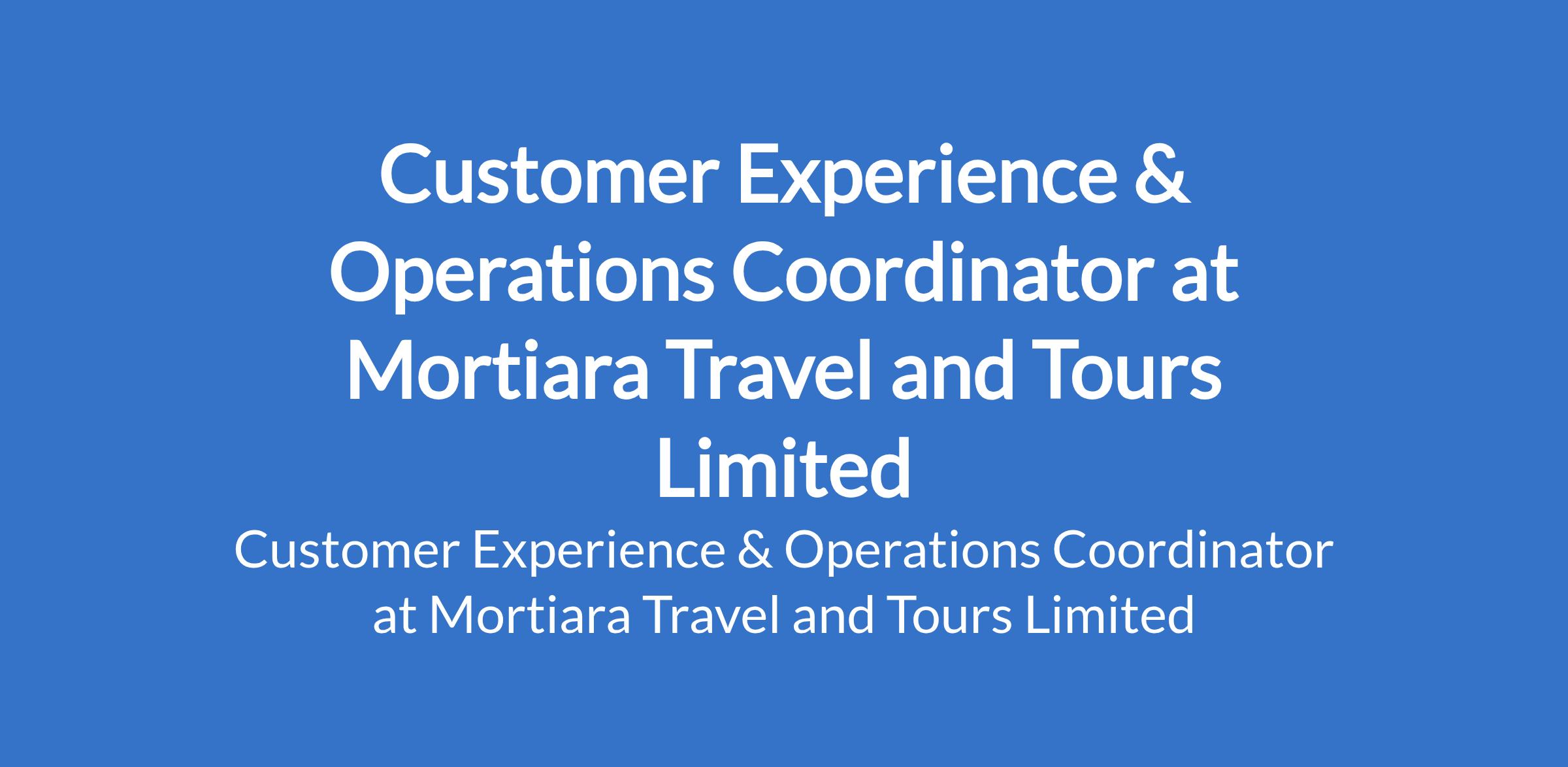 Mortiara Travel and Tours Limited is recruiting to fill the position of: Customer Experience & Operations Coordinator. The position is located in Redemption Camp, Lagos-Ibadan Expressway, Ogun State. Interested candidates should possess relevant qualifications and experience.