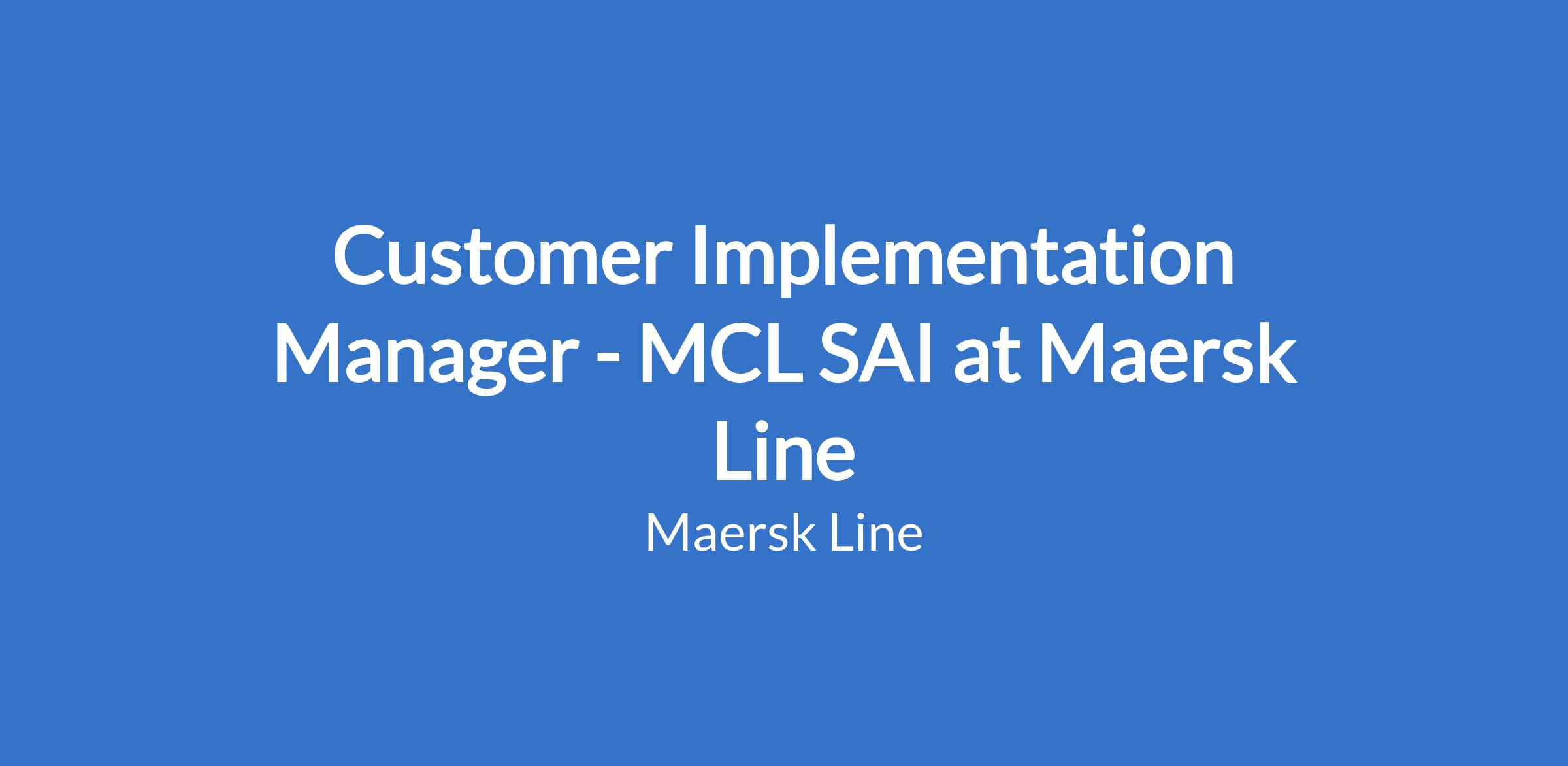 Customer Implementation Manager - MCL SAI at Maersk Line