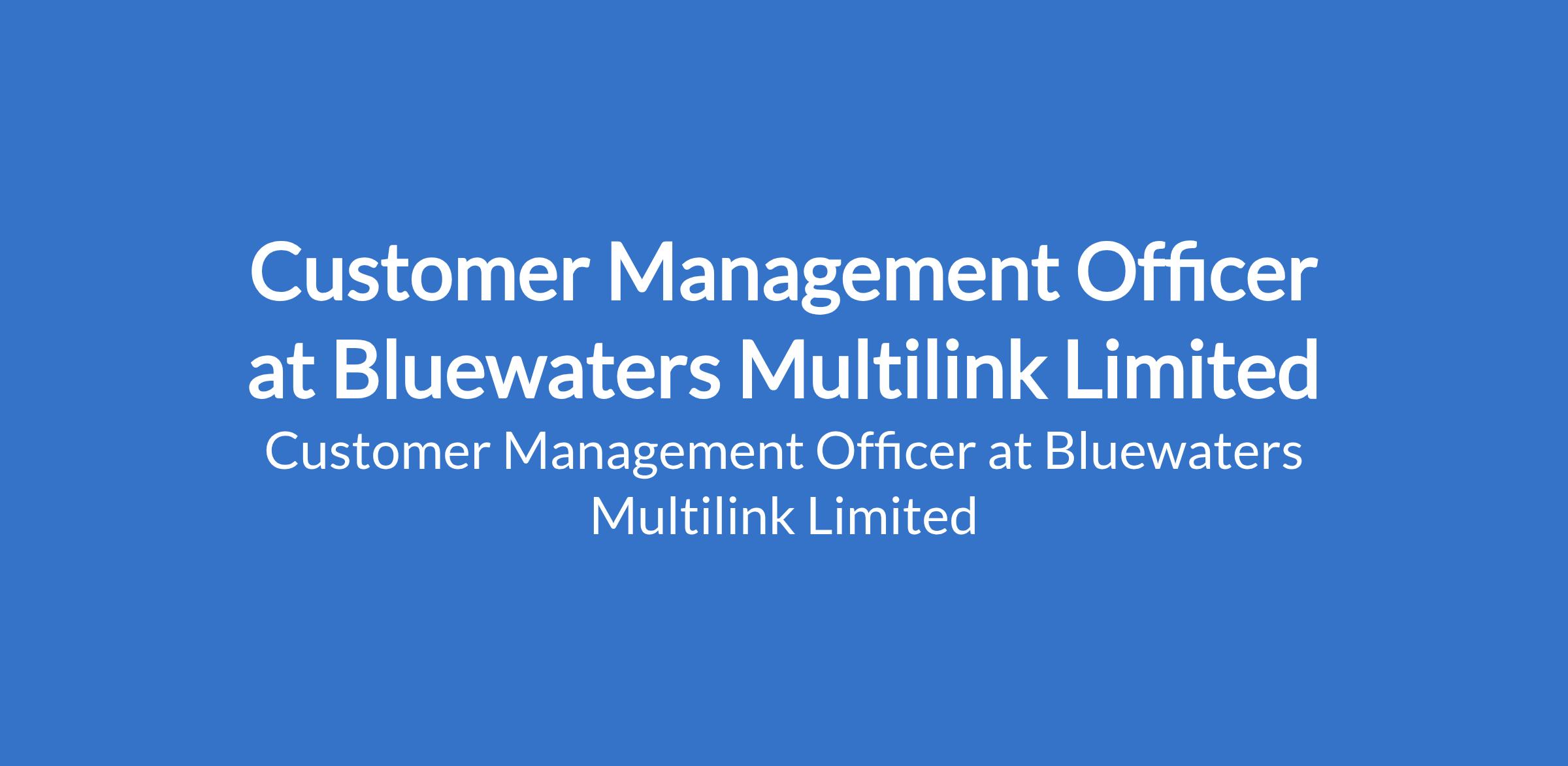 Customer Management Officer at Bluewaters Multilink Limited