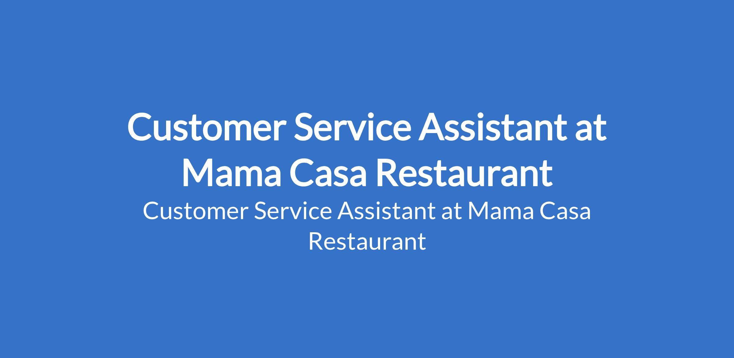 Mama Casa Restaurant is recruiting to fill the position of: Customer Service Assistant. The position is located in Victoria Island, Lagos State. Salary: N70,000 - N75,000 / month. In this role, you will be responsible for attending to customers, taking orders, and ensuring a pleasant dining experience through prompt service, professionalism, and product knowledge.