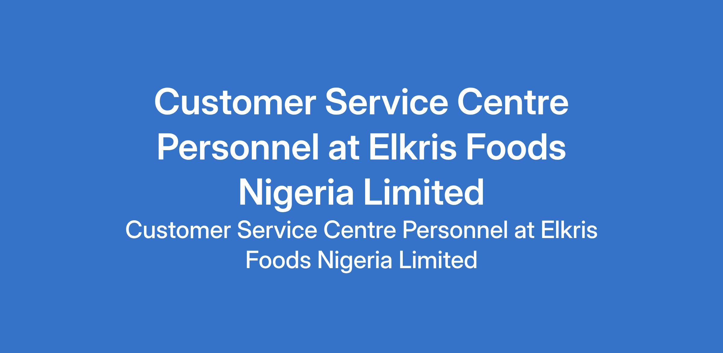 Elkris Foods Nigeria Limited is recruiting to fill the position of: Customer Service Centre Personnel. The position is located in Abuja (FCT). Salary: N150,000 - N180,000 per month. Interested candidates should possess a relevant qualification with a minimum of 2 years proven experience in a customer service role.