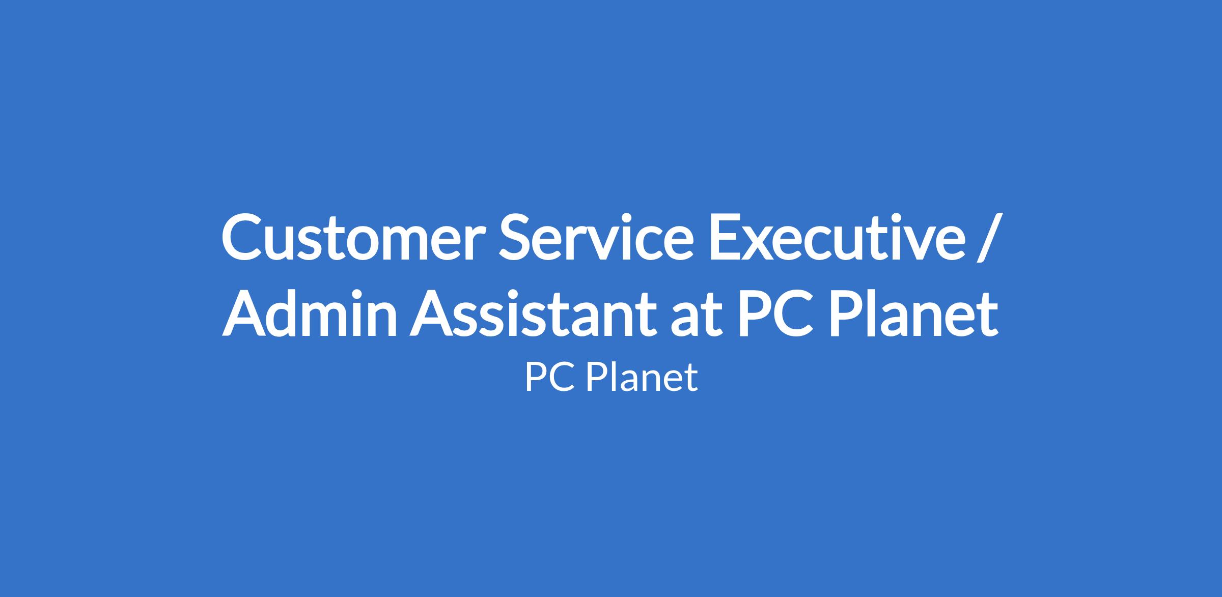 Customer Service Executive / Admin Assistant at PC Planet