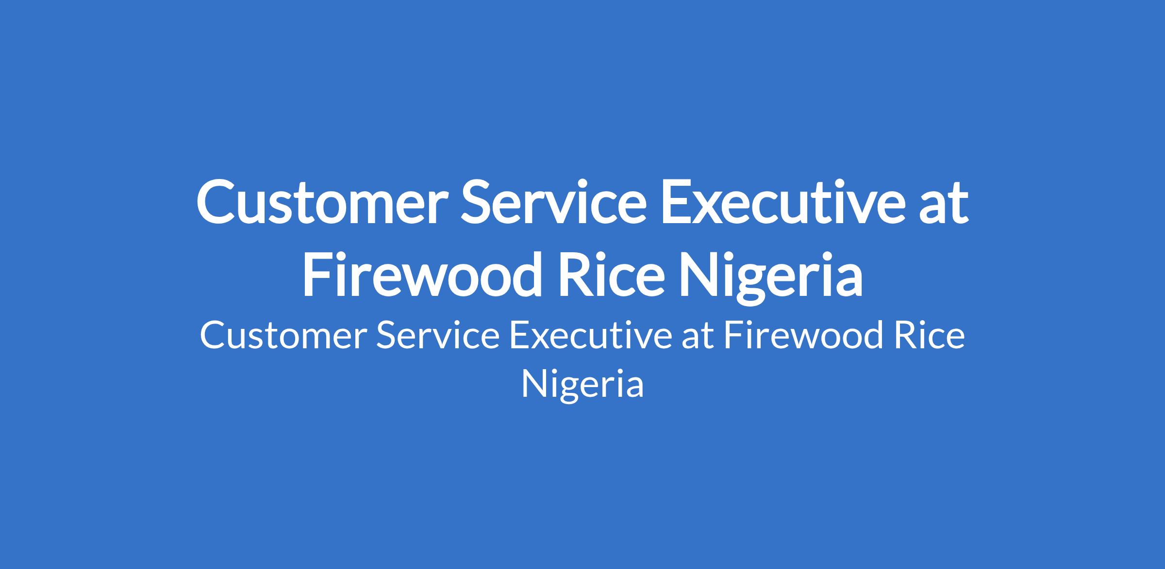 Firewood Rice Nigeria is recruiting to fill the position of: Customer Service Executive. The position is located in Lagos State. Salary: N100,000 per month. Interested candidates should possess a minimum OND / HND / Bachelors Degree in any related field with 12 years of customer service experience, preferably in food production, catering, or hospitality.