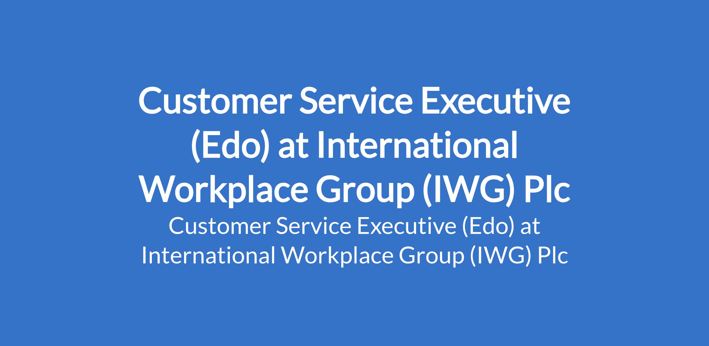 Customer Service Executive (Edo) at International Workplace Group (IWG) Plc