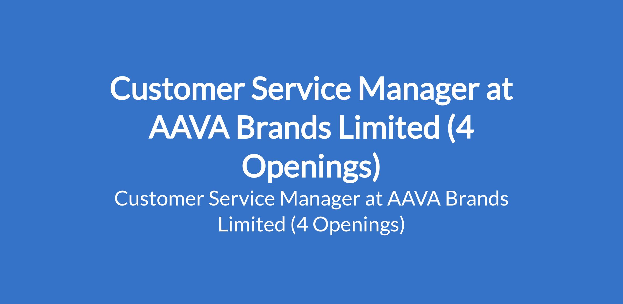 AAVA Brands Limited is recruiting to fill the position of: Customer Service Manager. The position is located in Abuja, Port Harcourt - Rivers, Ibadan - Oyo and Lagos States. Interested candidates should be a graduate / HND holder with 3-5 years relevant work experience.