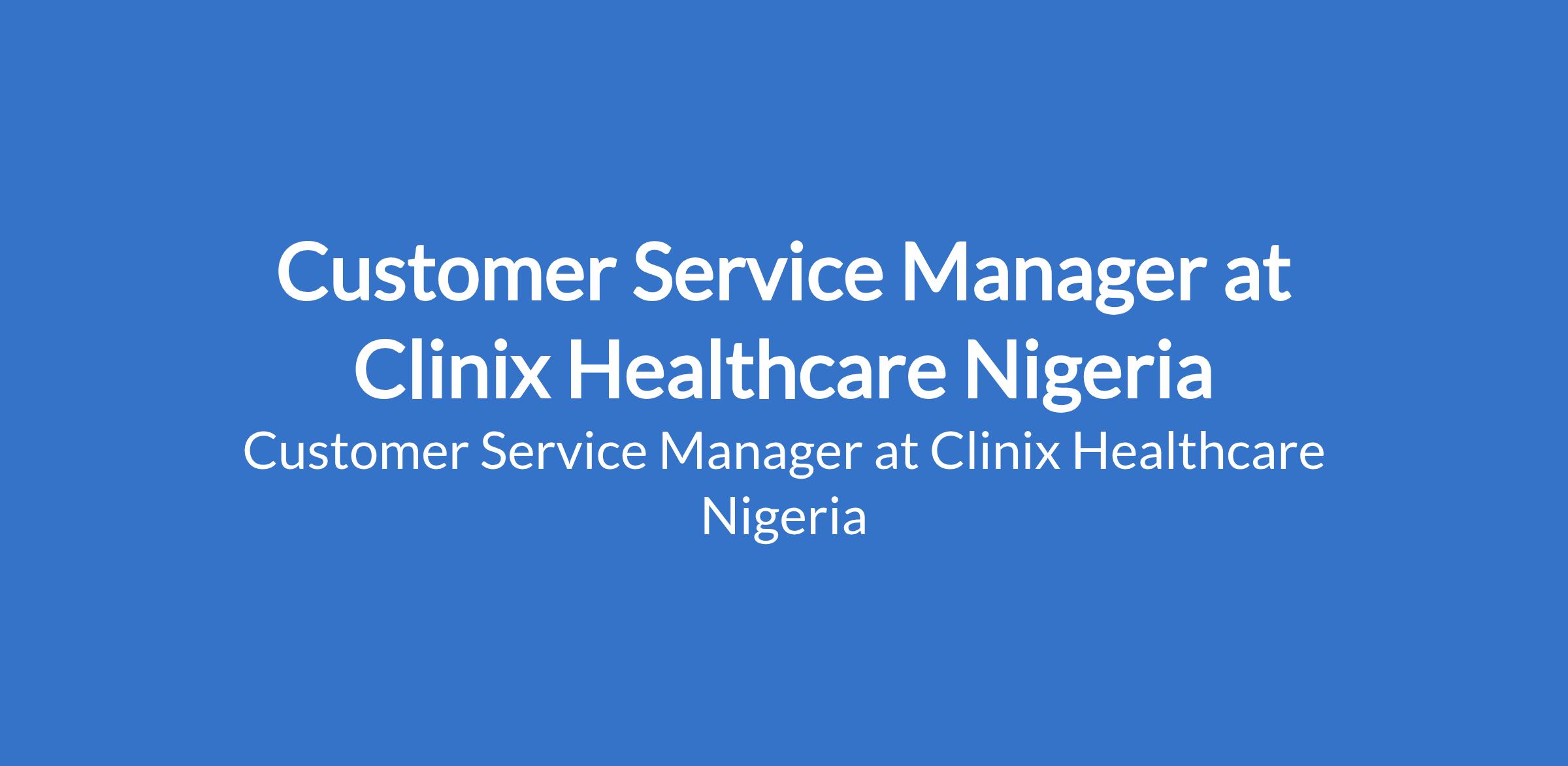 Clinix Healthcare Nigeria is recruiting to fill the position of: Customer Service Manager. The position is located in Festac, Lagos State. Interested candidates should possess a Bachelors Degree in Business Administration, Marketing, Mass Communication, or any related field with 46 years of customer service experience, with at least 2 years in a managerial or supervisory role.