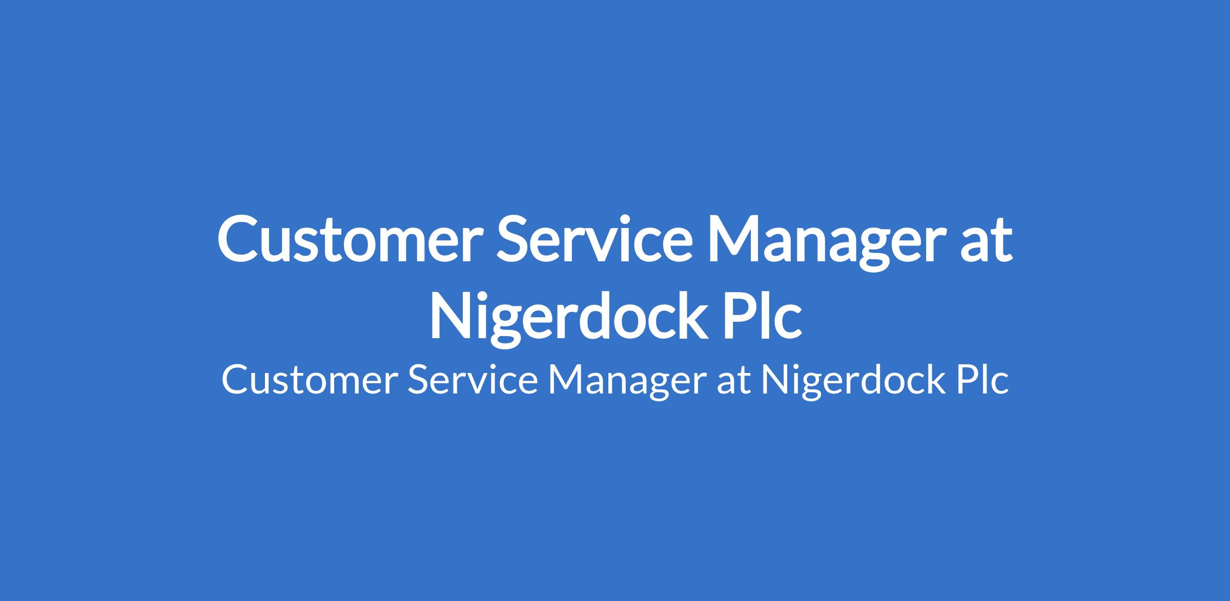 Nigerdock is recruiting to fill the position of: Customer Service Manager. The position is located in Lagos State. Interested candidates should possess a Bachelors Degree in Business Administration, Marketing, Real Estate, or a related field with a minimum 8 years of experience in customer service, account management, or business operations.