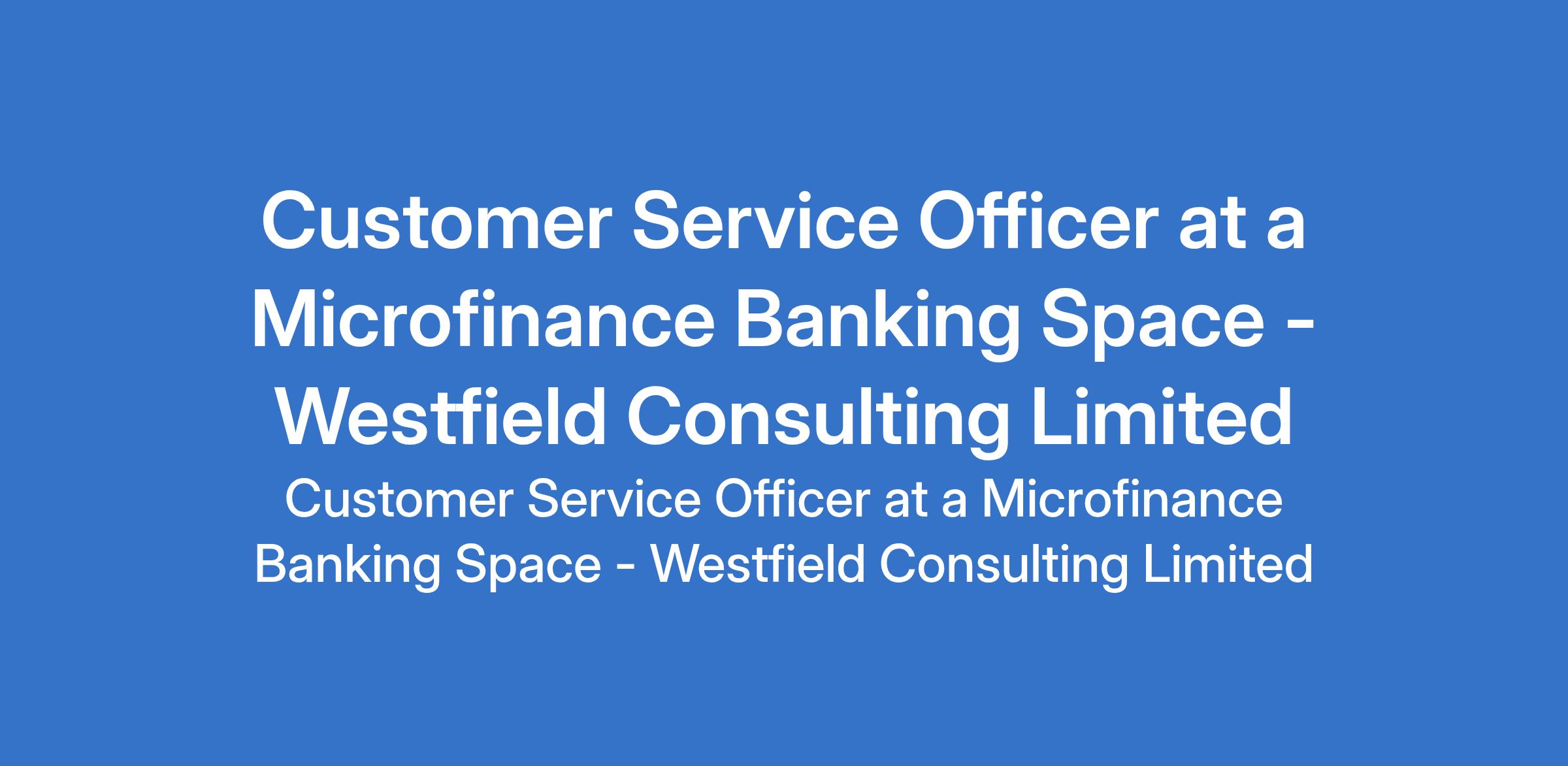 Westfield Consulting Limited - Our client in the Microfinance Banking space is recruiting to fill the position of: Customer Service Officer. Interested candidates should possess minimum of a First Degree with a minimum of 2 years experience in a Financial Institution environment.