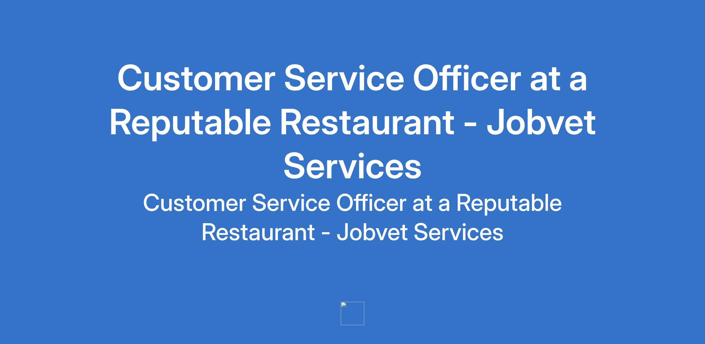 Jobvet Services - Our client, a reputable Restaurant is recruiting to fill the position of: Customer Service Officer. The position is located in Surulere, Lagos State. Salary: N70,000 - N80,000 monthly. Interested candidates should possess an SSCE, OND, or Bachelor's Degree with 1-10 years experience.